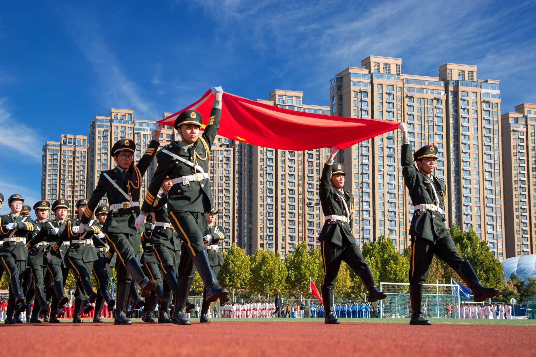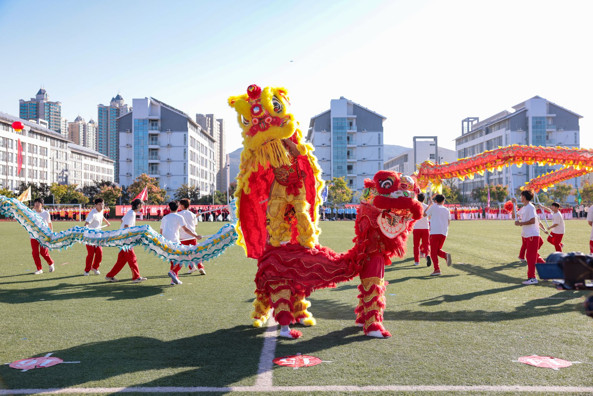 表演结束后,在国旗护卫队的引领下,包括各学院、各职能部门在内的25个方阵依次入场,他们迈着矫健的步伐接受主席台的检阅,意气风发,斗志昂扬。