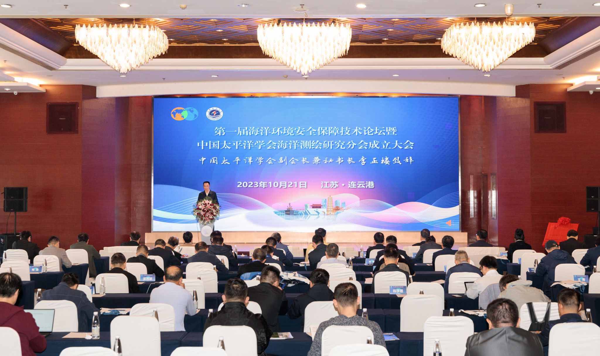 10月21-22日,由中国太平洋学会海洋测绘研究分会、中国太平洋学会海洋智能装备分会联合主办,我校承办的第一届海洋环境安全保障技术论坛暨中国太平洋学会海洋测绘研究分会成立大会在连云港市金陵云台宾馆顺利召开。中国太平洋学会副会长兼秘书长李正楼、江苏海洋大学校长宁晓明、连云港市副市长张家炯、河南理工大学副校长金双根等领导出席论坛,100余名国内科研院所、高等学校的专家学者和业界企业人员参加会议。中国太平洋学会海洋智能装备分会副会长兼秘书长吕日恒主持了开幕式。