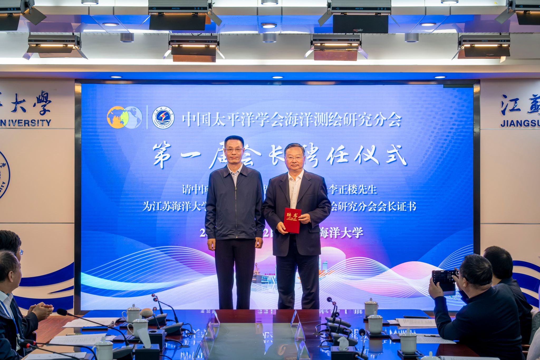 10月22日,中国太平洋学会海洋测绘研究分会第一届理事大会在江苏海洋大学学术会议中心顺利举行,会议审议通过了海洋测绘研究分会成立筹备工作报告、推荐名誉会长、集体学习了《中国太平洋学会章程》及《中国太平洋学会考核办法》等文件。举行了第一届会长、副会长、秘书长及理事会成员聘任仪式,参会人员就海洋测绘研究分会的工作开展进行了友好交流。会后,理事们参观考察了江苏海洋大学涉海教学科研设施。