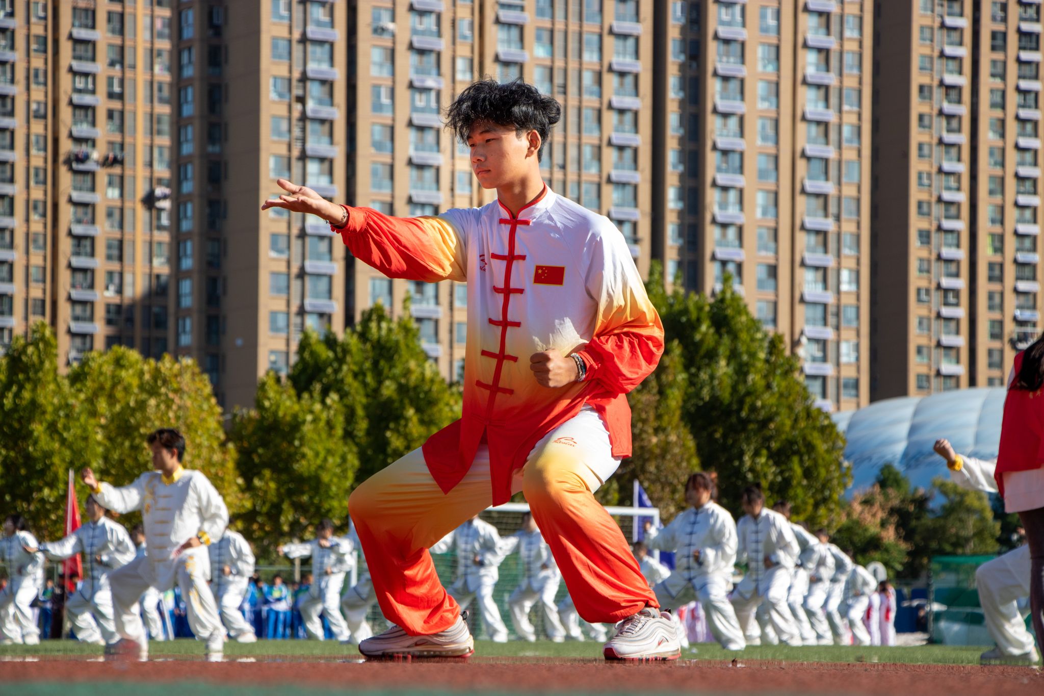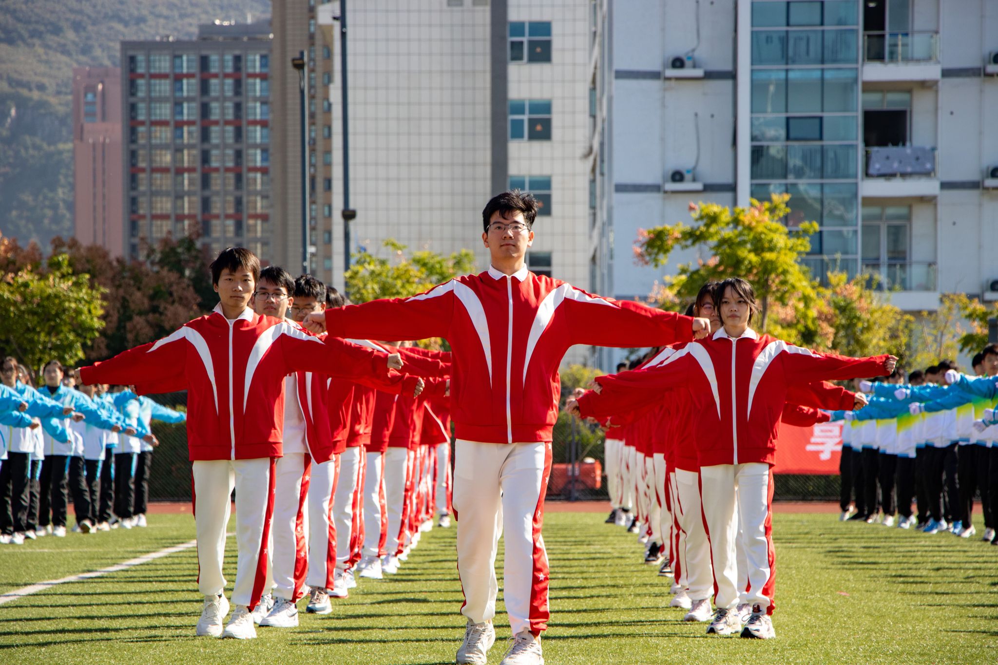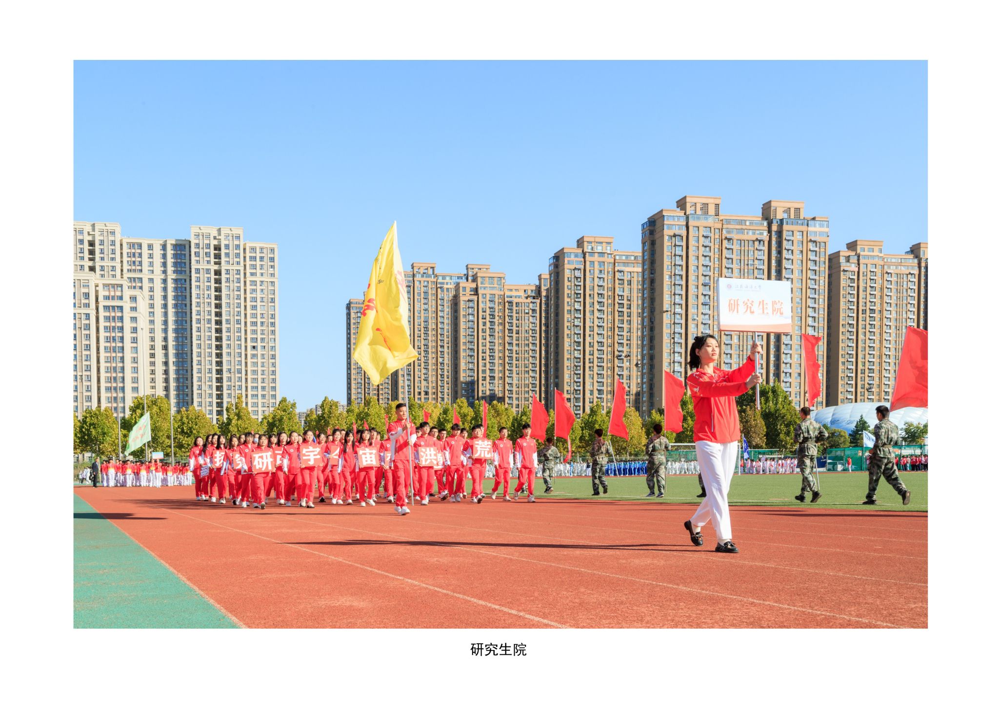 表演结束后,在国旗护卫队的引领下,包括各学院、各职能部门在内的25个方阵依次入场,他们迈着矫健的步伐接受主席台的检阅,意气风发,斗志昂扬。