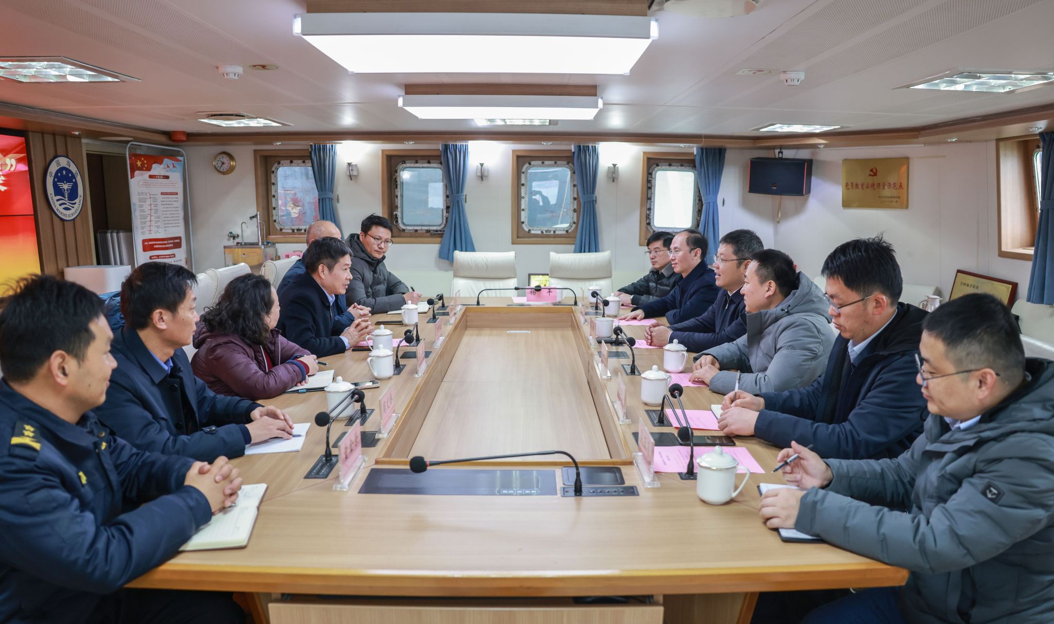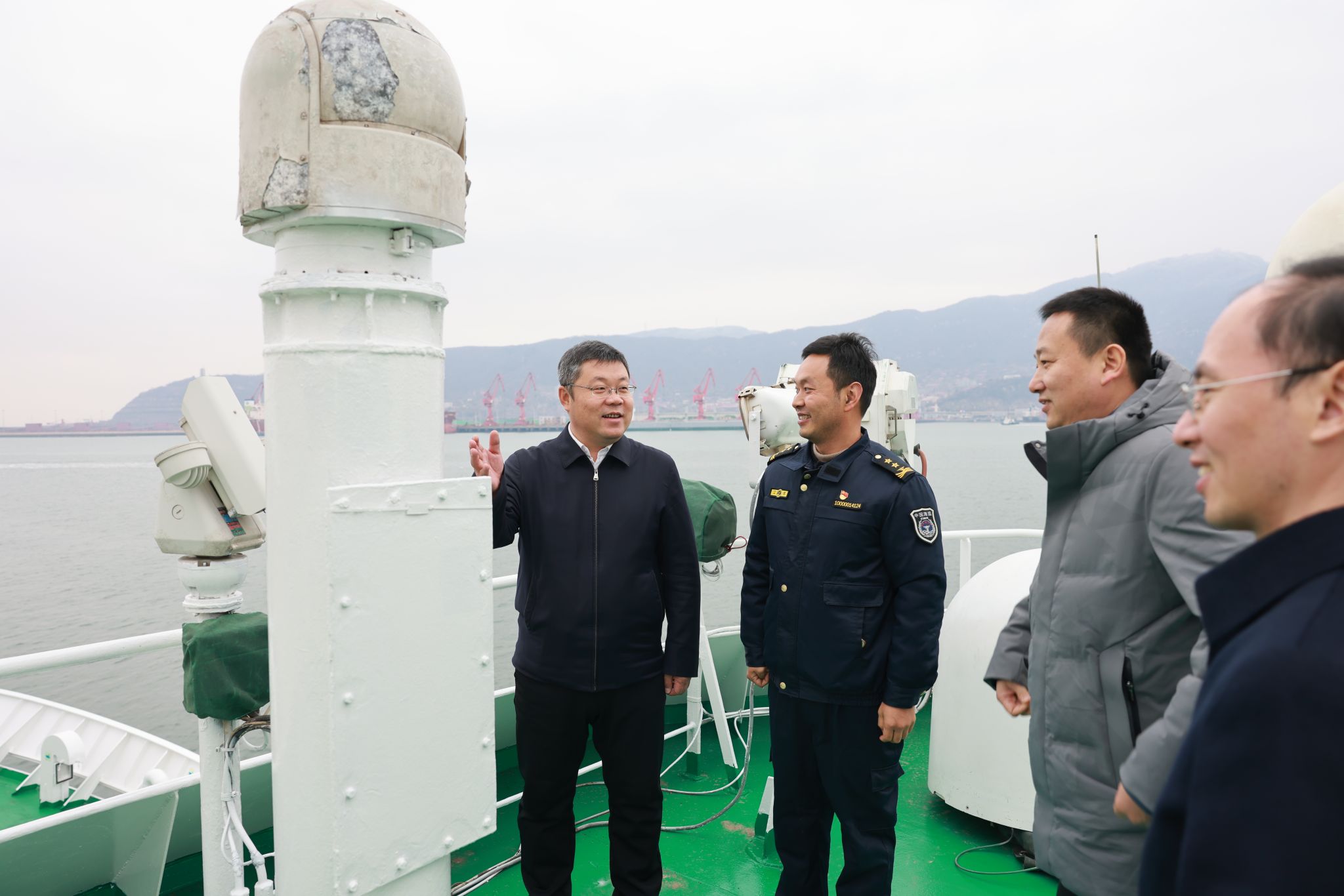 12月12日,校党委书记许峰带队赴黄海前三岛海域,参加与江苏省海域执法监督中心联合开展的“政校联动聚合力,向海向岛谋发展”主题党日活动。省海域执法监督中心党委书记、主任朱万江,副主任沈成平参加本次活动。副校长徐军田、纪委书记徐双俊陪同参加。
