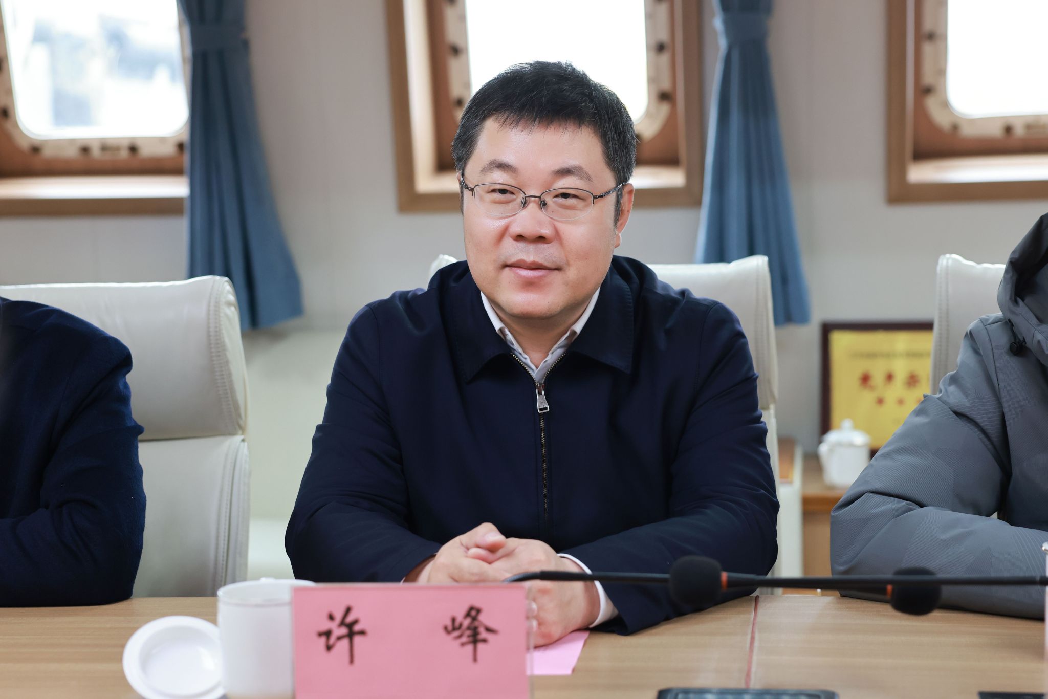 活动中,双方围绕“政校联动聚合力,向海向岛谋发展”这一主题进行了座谈。许峰简要介绍了学校在人才培养、学科建设、科研创新等方面的发展情况。他指出,江苏海洋大学第一次党代会确立了“三建一高”发展目标和“三步走”战略,为学校事业发展进一步指明了方向。当前学校上下正深入贯彻落实党代会精神,不断谋划向海发展:一是积极加强涉海学科建设,致力于把涉海学科群打造成“学科高地”;二是推动各学科协调发展,让海洋特色沁润每一个学科;三是全面加强海洋意识教育,积极打造“蓝色思政”育人品牌;四是稳步推进涉海平台建设,着力打造集科考船、海上试验平台、海岛科研基地、海洋牧场为一体的综合立体海上试验基地。许峰对江苏省海域执法监督中心近年来对学校事业发展的支持表示感谢,期待与中心在政产学研用等方面进一步深化合作,产出更多有影响力的科研成果,为推动江苏海洋经济发展作出更大贡献。