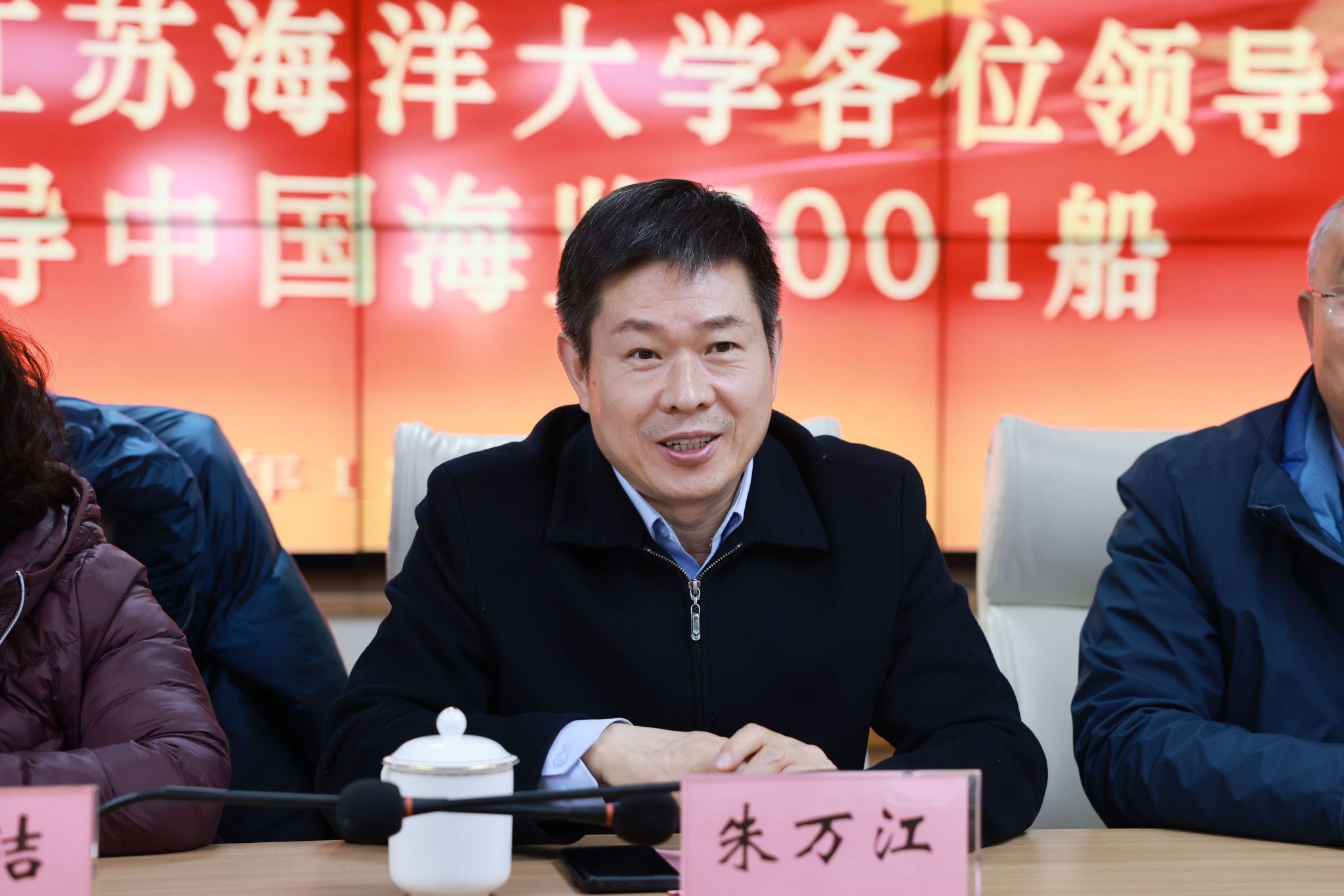 朱万江介绍了近年来江苏省海域执法监督中心与学校开展合作的情况,对我校海洋专业师生积极参与浒苔防控打捞技术研发、海洋生态保护等出海科研工作、推动中心发展等方面发挥的作用给予了充分肯定。他表示,该中心将与我校持续深化合作,为学校海上科研教学提供服务保障。