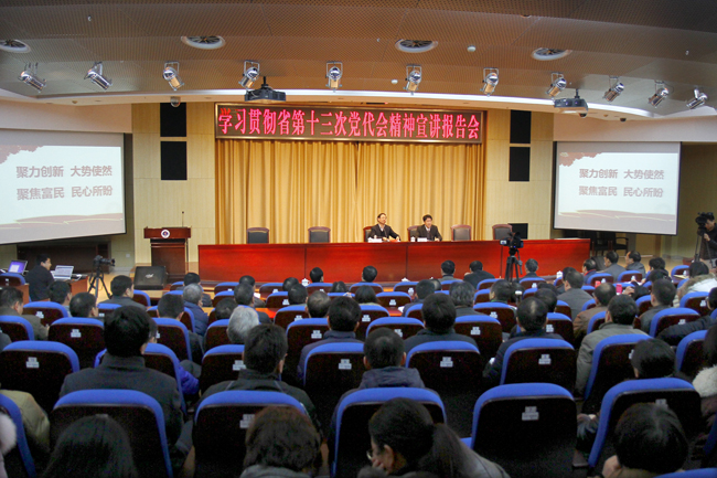 侯学元在宣讲中介绍了省第十三次党代会召开的盛况和意义,用大量翔实的数据解读了党代会报告中的思想精髓以及新观点、新提法,分析了省第十二次党代会以来全省取得的成绩、提炼的经验和存在的问题,全面系统深入地解读了党代会报告《聚力创新 聚焦富民 高水平全面建成小康社会》的深刻内涵,阐述了未来五年我省在着力推进经济转型升级、提升农业农村发展、加强社会主义民主法治建设,提升文化软实力、保障和改善民生、推进生态文明建设、深化改革、扩大开放等方面的重要举措,并就如何坚定不移地推进全面从严治党也做了详细的解读。