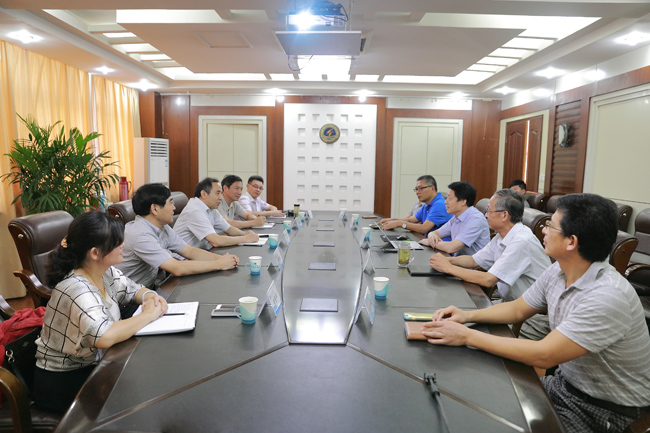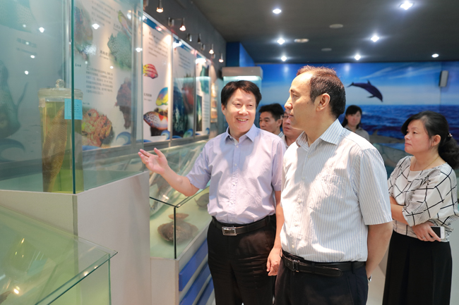 9月19日上午,江苏科技大学党委书记王济干一行来我校交流考察,参观了校园和海洋馆。校党委书记赵炳起、副校长刘永强在行政楼会议室会见了王济干一行。双方就办学特色、办学目标定位进行了深入交流。校党委常委、组织部长尹德树,党办校办主任陈太彬,化学工程学院院长童志伟陪同会见。