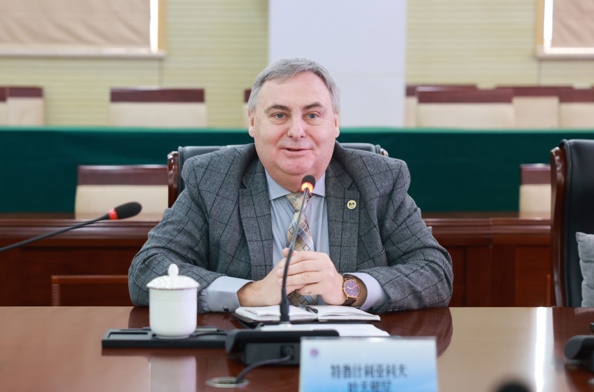 Eugeniy Trushliakov感谢我校的热情接待,并从地理位置、师生规模、学院设置、科研领域、国际合作等方面简要介绍了马卡洛夫国立造船大学基本情况。Eugeniy Trushliakov强调,马卡洛夫国立造船大学所在的尼古拉耶夫市是一座建造航母的城市,前苏联的航母均出自该市。当前学校正在探索构建全新造船理念,在困难形势下仍向前发展,不断扩大与国外教育机构,尤其是中国高校间的合作。Eugeniy Trushliakov表示很高兴有机会访问江苏海洋大学,希望能够推动马卡洛夫海洋工程学院进一步提高发展层次,落实双方合作思路,把学院建成中乌合作示范学院,并预祝未来两校合作更加成功。