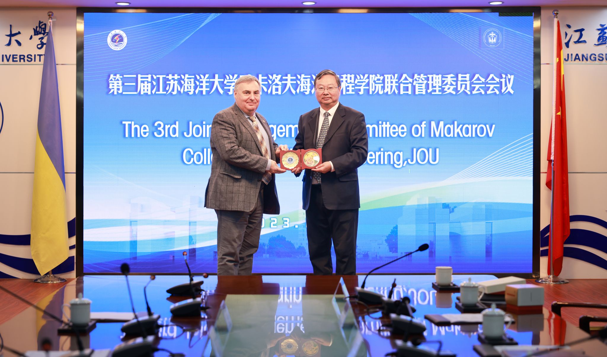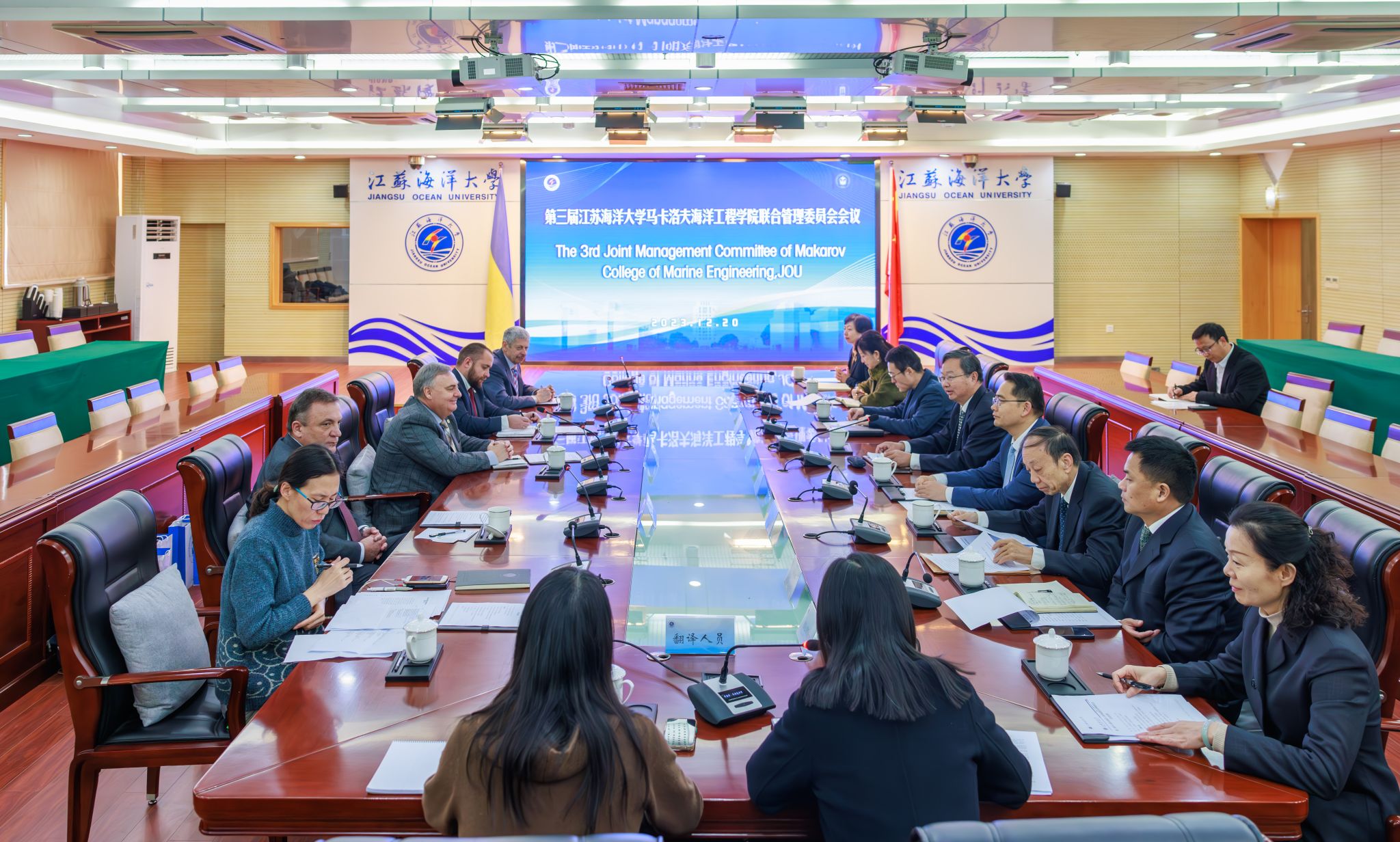 12月20日上午,第三届江苏海洋大学马卡洛夫海洋工程学院联合管理委员会会议在我校东海厅顺利举行。马卡洛夫国立造船大学校长Eugeniy Trushliakov、副校长Pavlov Gennadii、副校长Mykhailov Mykhailo、乌克兰造船科学院院士、机械工程教育科学院院长Serhiy Serbin,江苏海洋大学校长宁晓明、副校长申欣、副校长张元良、马卡洛夫海洋工程学院院长舒小平出席会议。马卡洛夫海洋工程学院、海洋工程学院、教务处、国际交流与合作处相关负责人参加会议。本次会议由江苏海洋大学校长宁晓明主持。