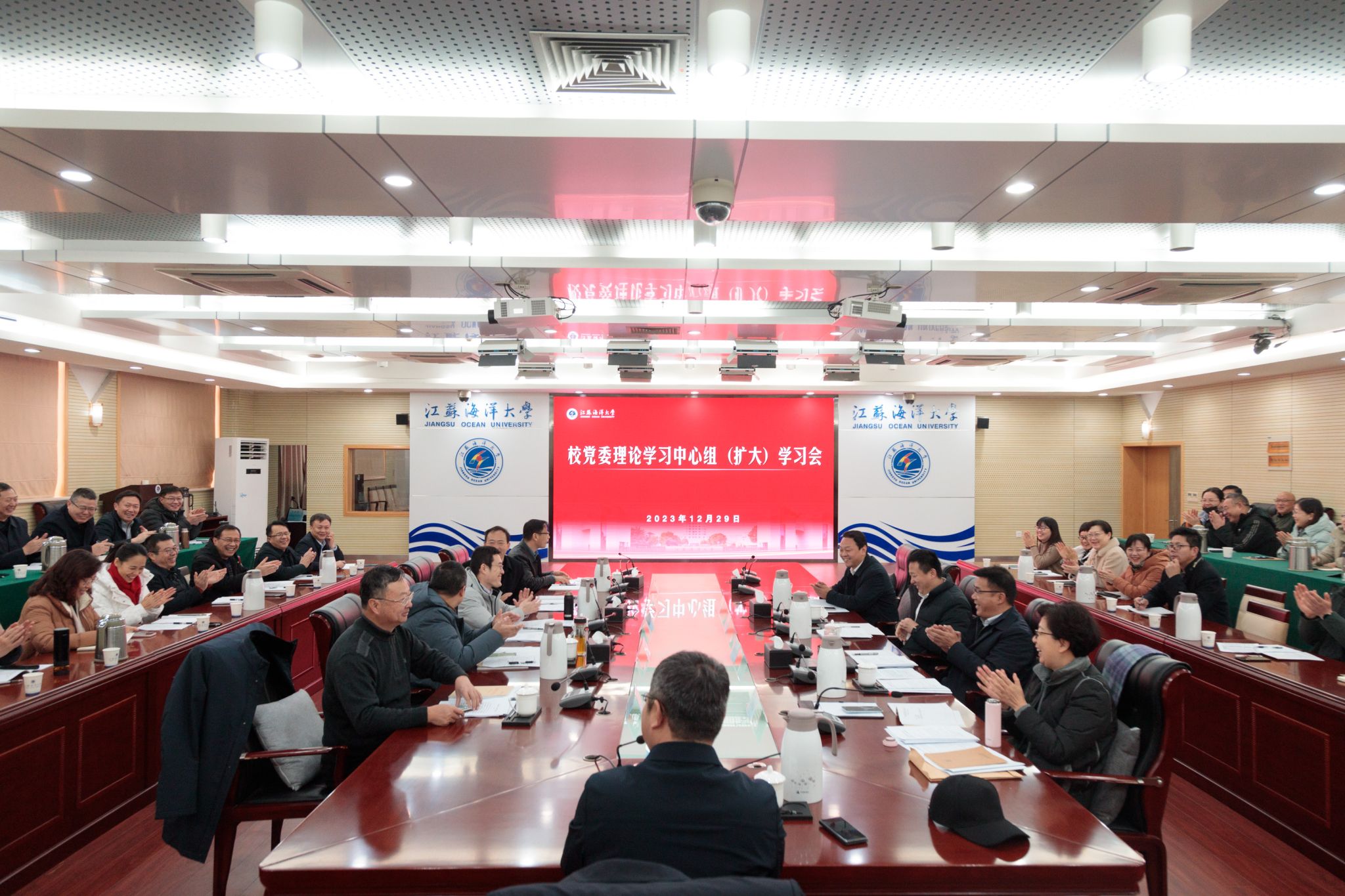 12月29日上午,学校在会议中心东海厅召开校党委理论学习中心组(扩大)学习会。校党委书记许峰主持会议并讲话。在连校领导、“两委”委员、全体中层干部正职参加学习会。