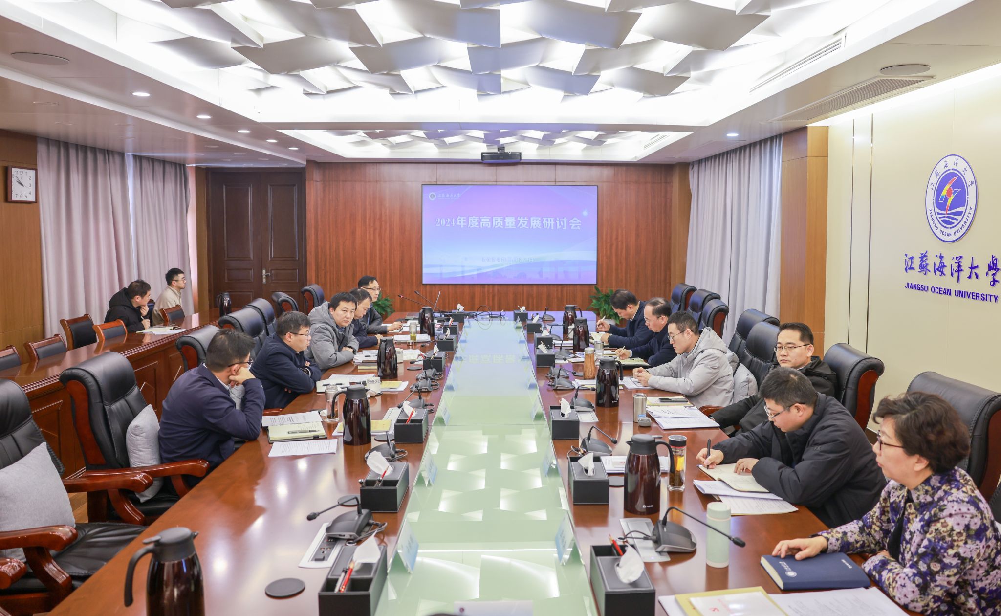 1月21日至22日,校领导班子推动学校高质量发展研讨会召开。会议坚持以习近平新时代中国特色社会主义思想为指导,深入贯彻党的二十大精神,以“坚持教育、科技、人才一体推进,贯彻落实第一次党代会精神,加快推进学校事业高质量发展”为主题,系统总结学校2023年工作经验成效,深入分析江苏高质量发展特别是海洋产业发展的总体形势,科学谋划学校2024年发展目标、工作重点和路径举措。校党委书记许峰主持会议并讲话,校长宁晓明,校党委副书记李梅英,副校长朱国军、郑利军、申欣、马廷淮、张元良、徐军田,校纪委书记徐双俊分别作报告,党委常委参加研讨。
