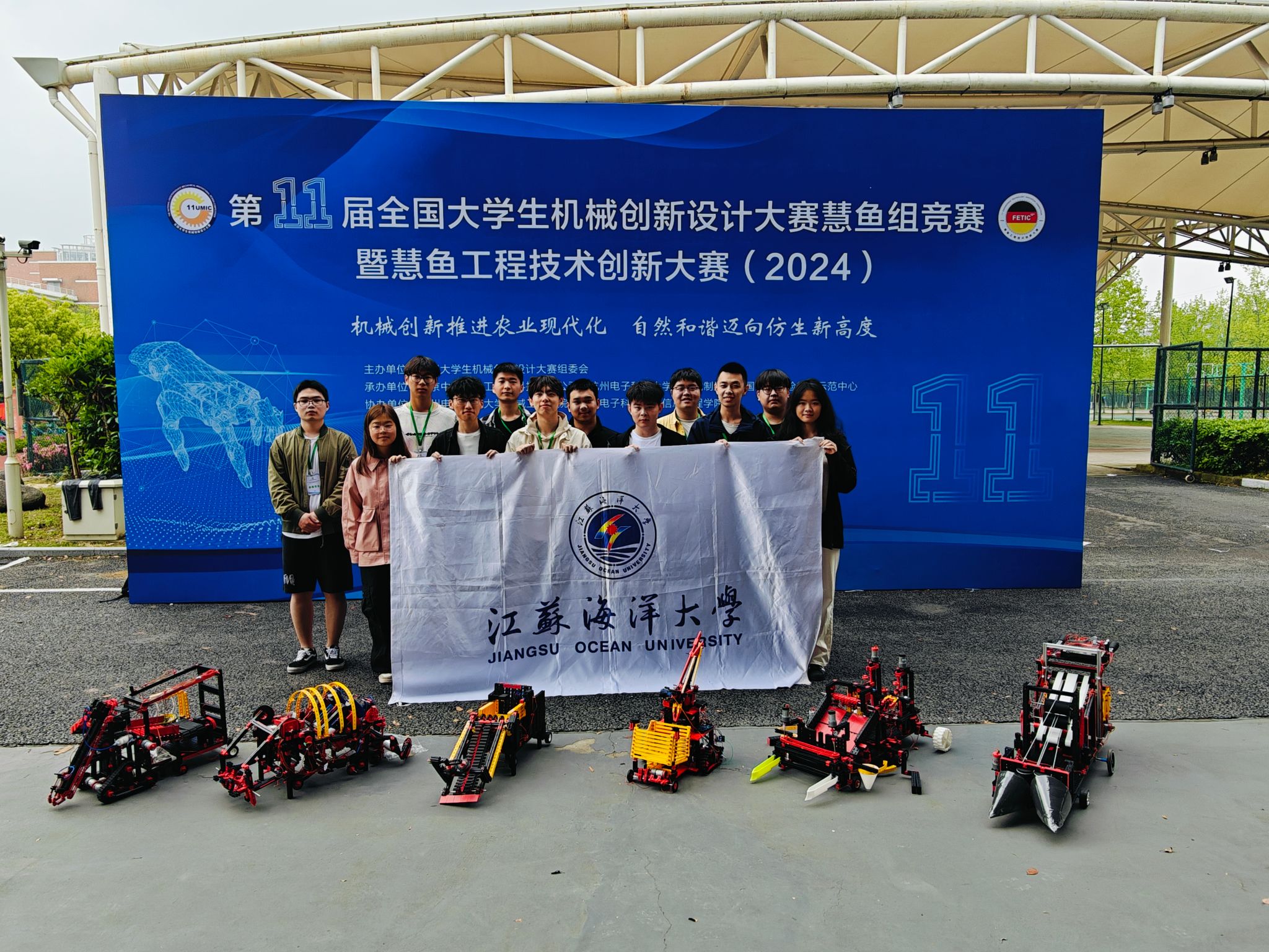 第十一届全国大学生机械创新设计大赛慧鱼组竞赛暨慧鱼工程技术创新大赛于4月19至21日在杭州电子科技大学举行。经过校赛、省赛等层层选拔,我校共获一等奖1项,二等奖4项,三等奖1项。其中,由土木与港海工程学院王海若老师、机械工程学院冯文老师联合指导的《基于慧鱼的机械刀盘式仿形黑豆播种机》获得一等奖。由机械工程学院、电子工程学院、土木与港海工程学院、应用技术学院、创新创业学院、马卡洛夫海洋工程学院等师生创作的《智能韭菜收割捆扎一体机》、《辣椒采摘机器人》、《基于慧鱼机器人的一体化大葱移栽机》、《盛萝万象—萝卜智能收获机》获得二等奖;《基于慧鱼的芋头收获机》获得三等奖。