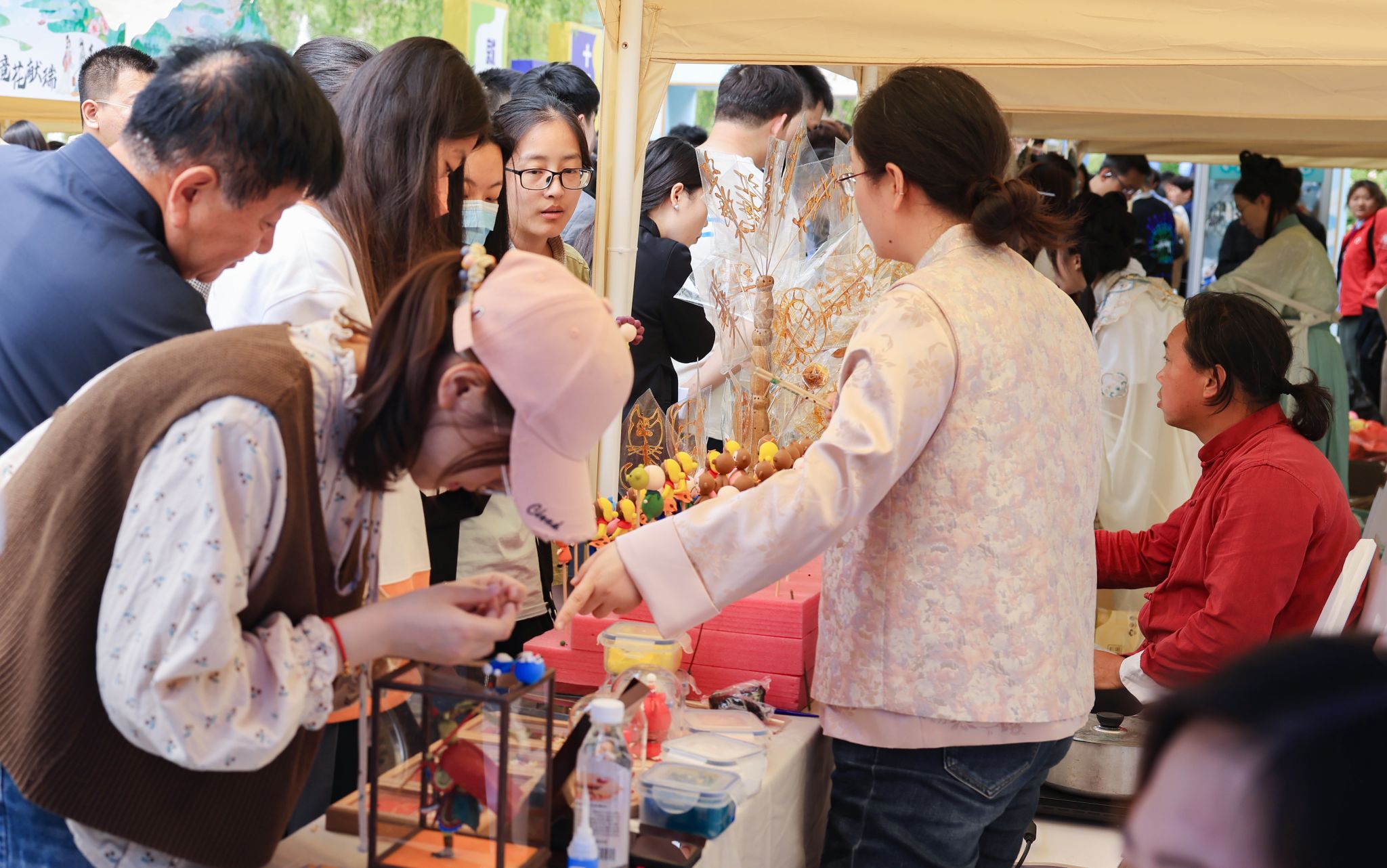 为了吸引更多的毕业生留连就业,海州区文旅局在招聘会当天举办了青春体验集市,展示非遗手办、品尝海州农特产品。“海宝幸运大转盘”、“甜在海宝”主题蛋糕、“文创盲盒”、海州风景区门票……丰富多彩的“青嗨”礼包吸引了众多学生参与。