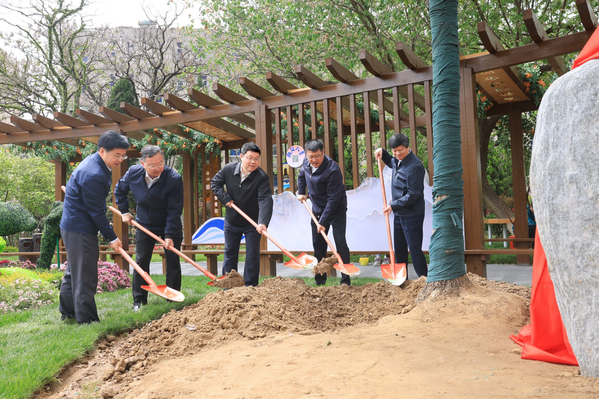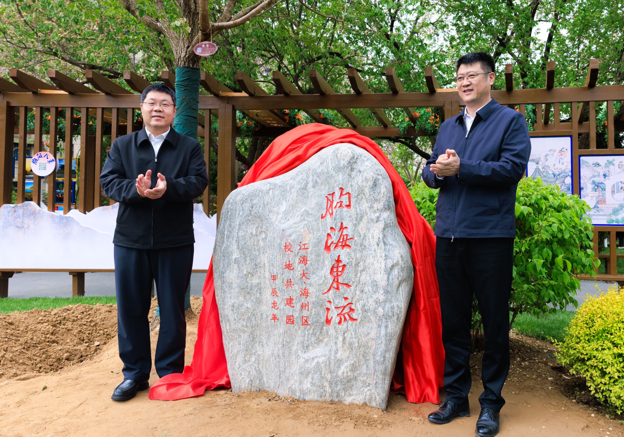 4月28日上午,我校举办隆重的开园仪式,校党委书记许峰、校长宁晓明,海州区委书记李锋、区长朱伟哲等校地双方领导共同为共建园主景观石“朐海东流”揭幕,种下象征着校地情谊长久的流苏树。