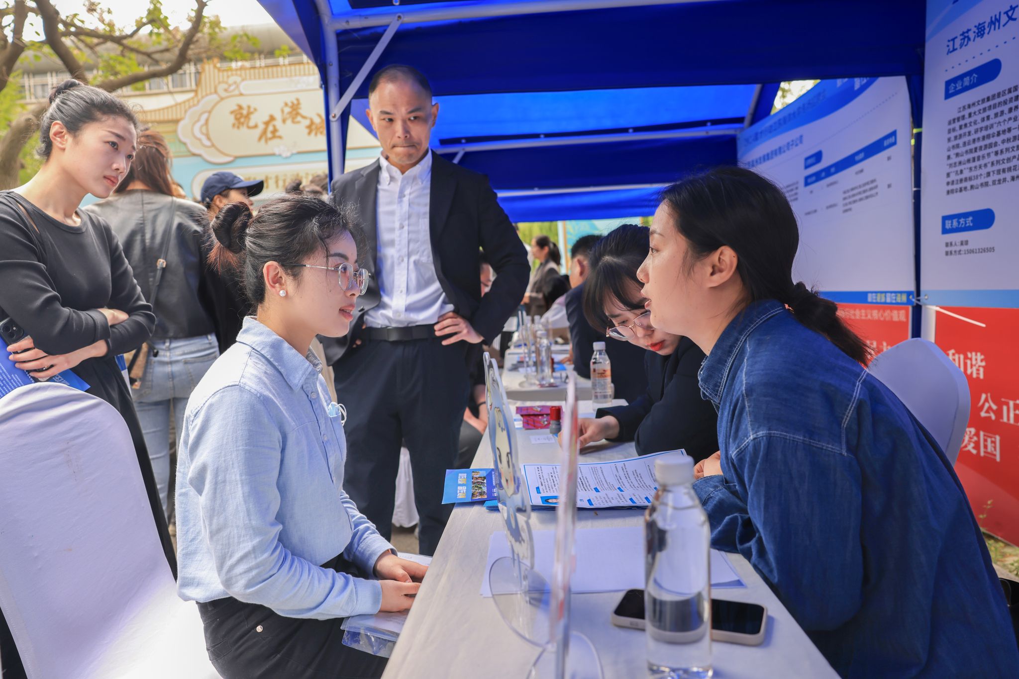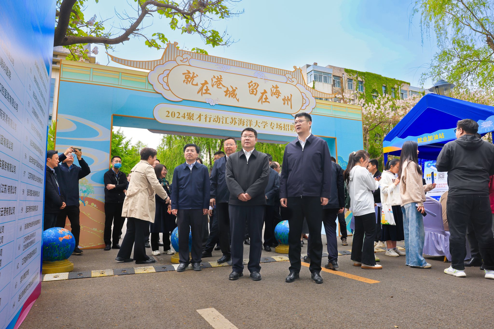 随后,校地双方领导来到西河路,现场考察“就在港城·留在海州”聚才行动专场招聘会。同日的招聘会上,来自海州区国企、龙头企业、21个镇街园区重点民营企业等71家单位,为我校毕业生提供近千个工作岗位,海州区还为我校毕业生量身定制了优惠政策,部分享受“名校优生”安居补贴政策。