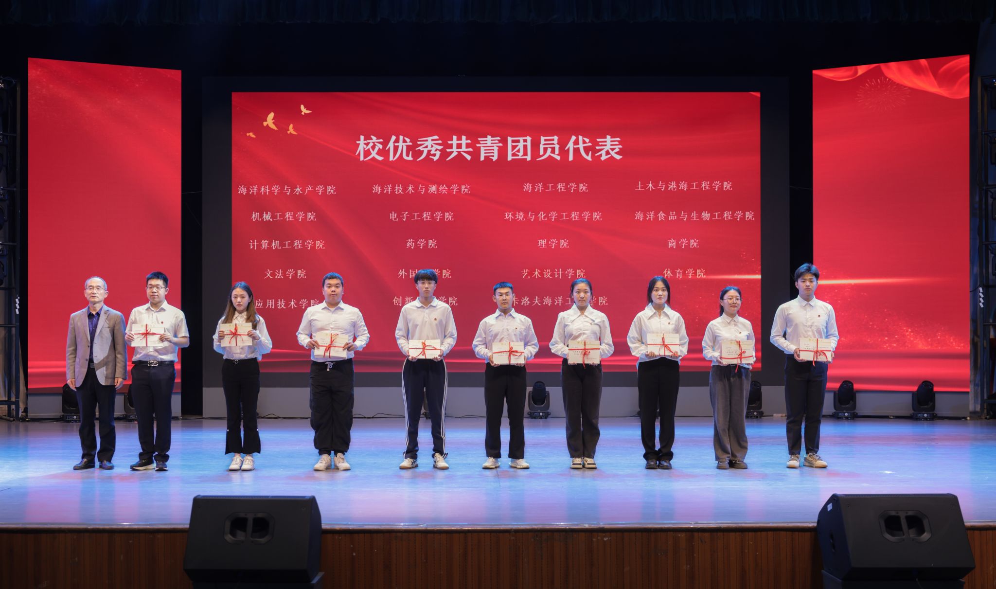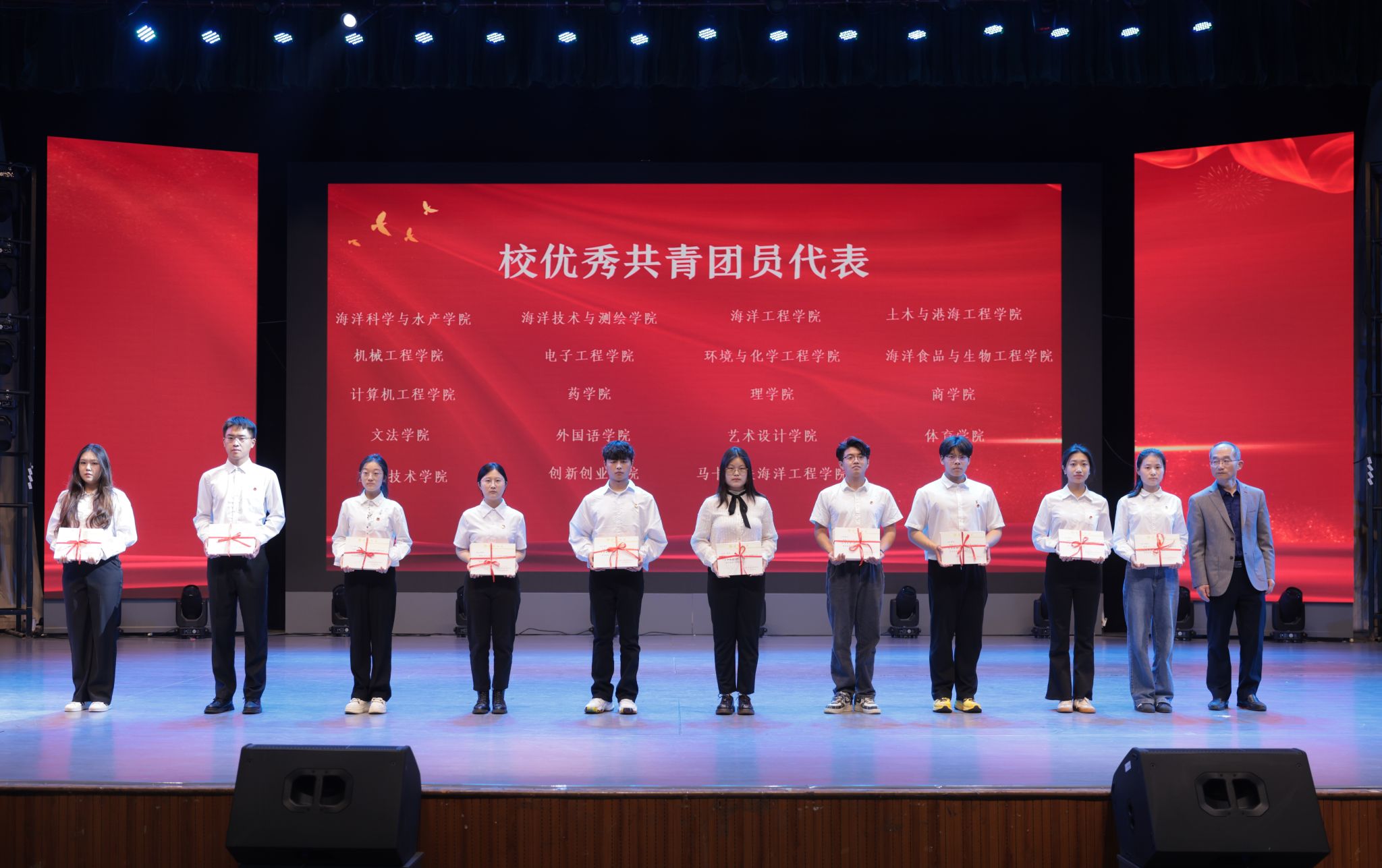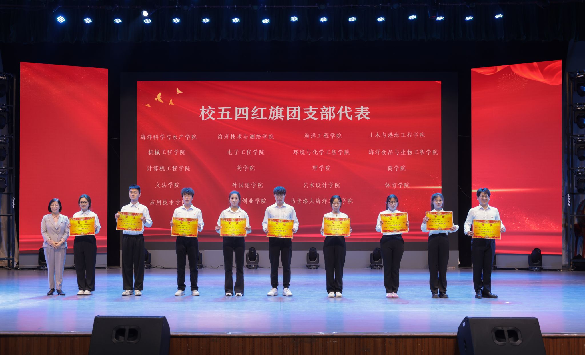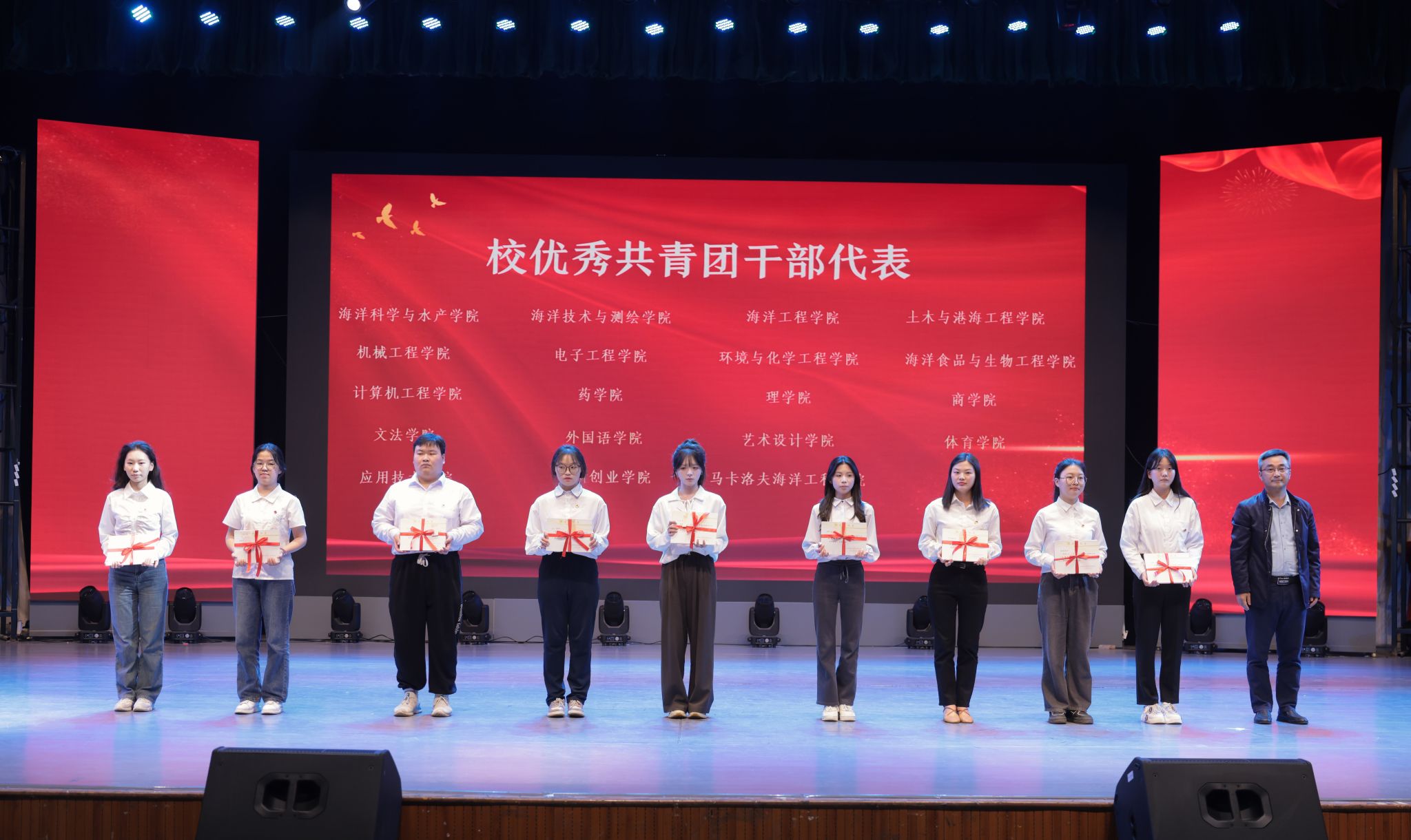 为纪念五四运动105周年,传承和弘扬“五四精神”,树立青年标杆,凝聚青年力量,5月7日下午,我校在苍梧校区大礼堂召开2024年五四表彰大会。校党委书记许峰、副校长朱国军出席大会。受省、市、校各级团组织表彰的集体和个人,以及600余名师生代表参加大会。大会由朱国军主持。