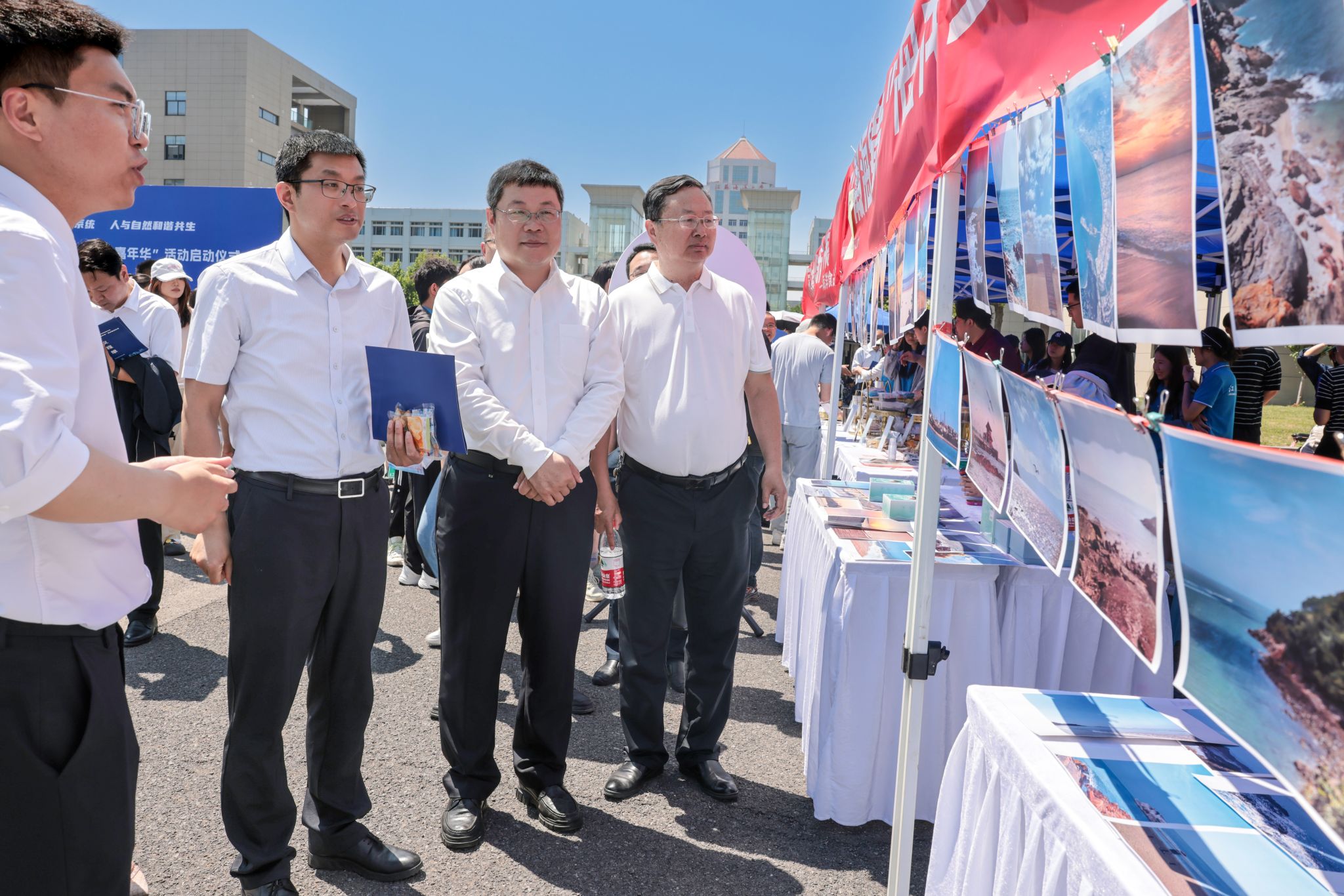启动仪式后,与会领导、在场师生参观了“海上无人船艇”现场科普、水族缸造景大赛成果展、智能机器人竞赛项目展演、涉海研究创新成果展、水上运动等展示项目,现场参与海洋文化美育绘画、海洋食品创新成果展美食大转盘等体验项目。