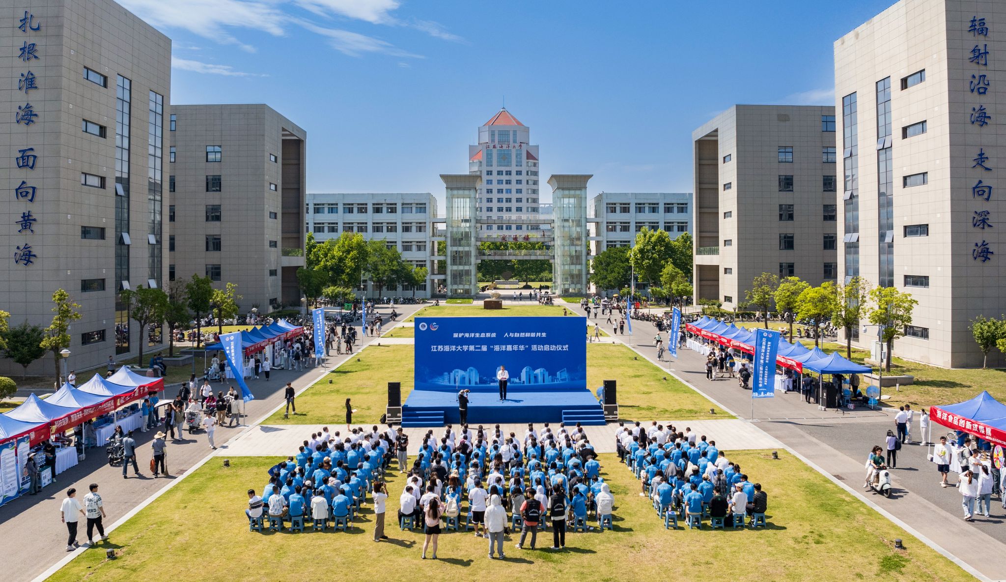 五月的校园,繁花似锦,绿茵如海。阳光下的广场上,师生代表齐聚一堂,共同迎来并见证了这属于海洋人的精彩时刻。