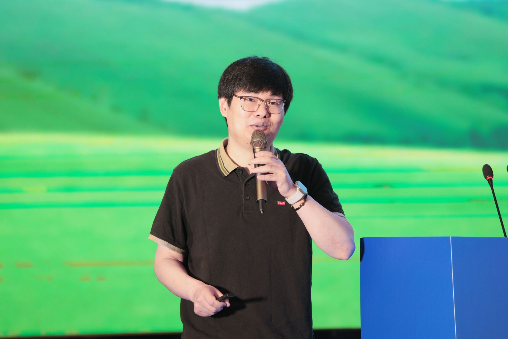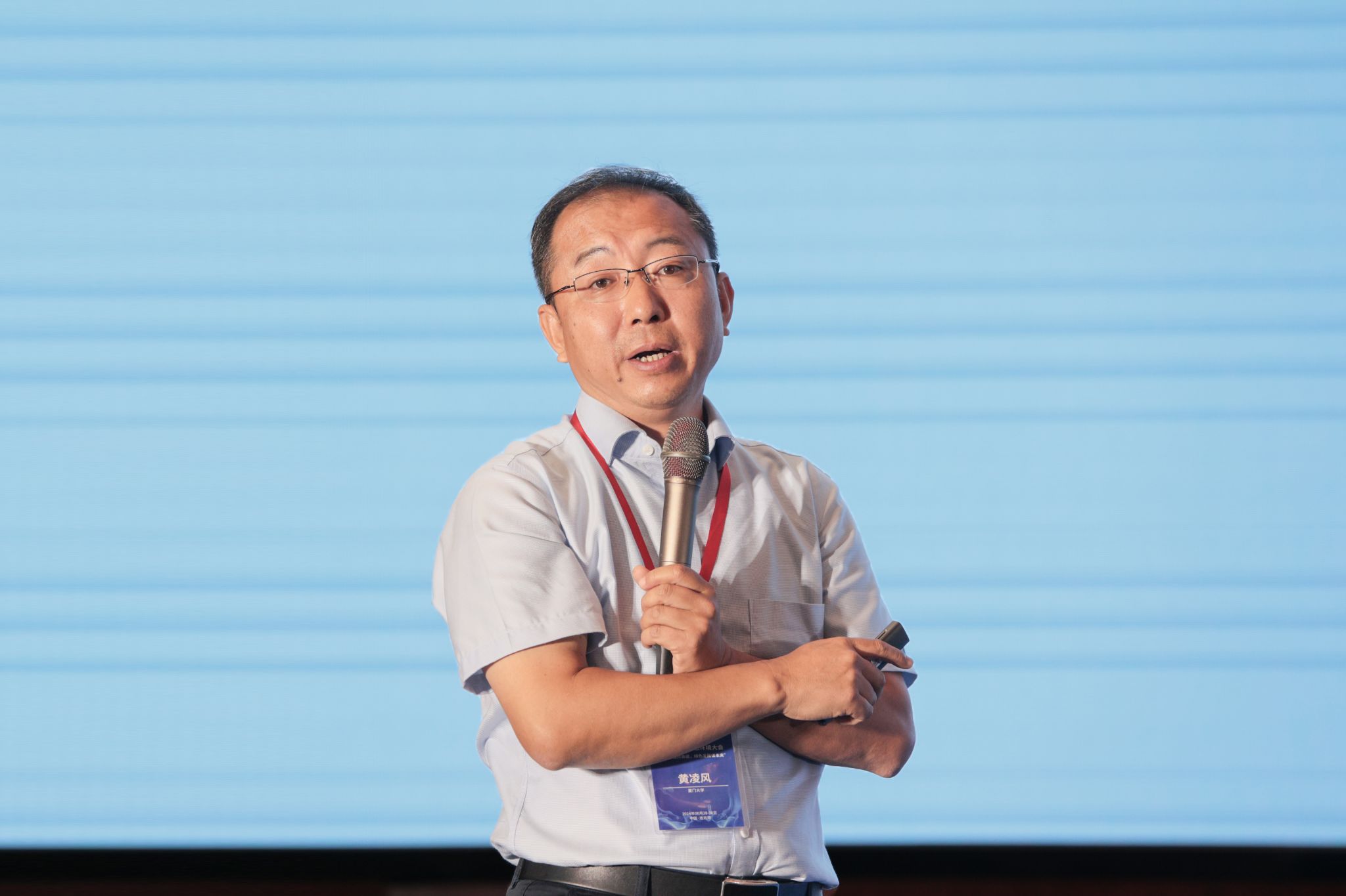 华东师范大学施华宏教授作“海洋养殖区泡沫塑料污染与防控”主旨报告。我校副校长申欣、徐军田主持了大会主旨报告环节。
