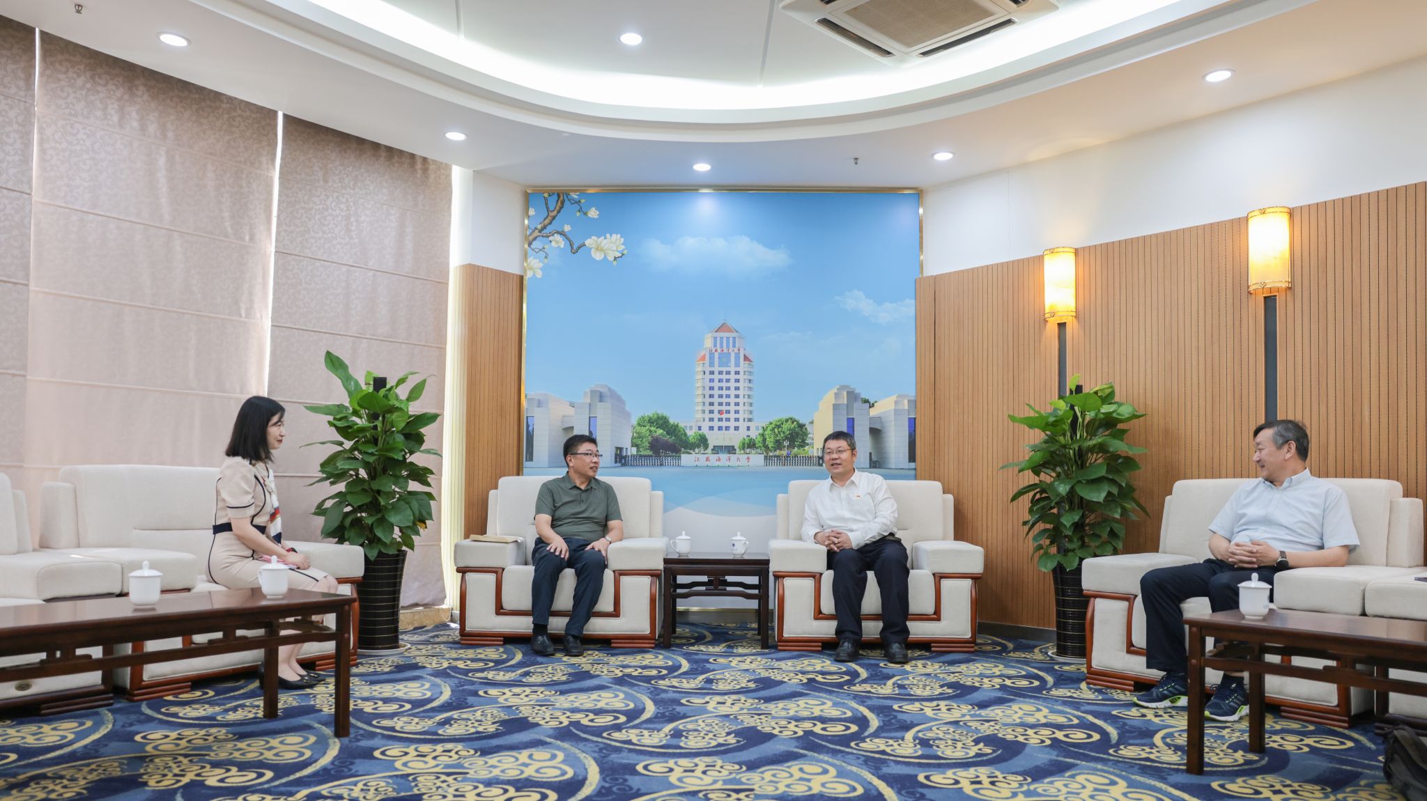 许峰在会见中向国家留学基金委、省教育厅以及省高等教育学会给予我校留学生教育管理工作的关心和指导表示感谢。他表示,承办本次培训对我校深入贯彻落实全省教育外事工作会议精神,进一步加强留学生教育管理工作,提升管理质量和水平,推动我校来华留学教育工作再上新台阶具有重要意义,同时也为省内兄弟院校之间加强留学生教育管理工作的交流互鉴搭建平台,共同助力江苏省来华留学教育事业高质量发展。