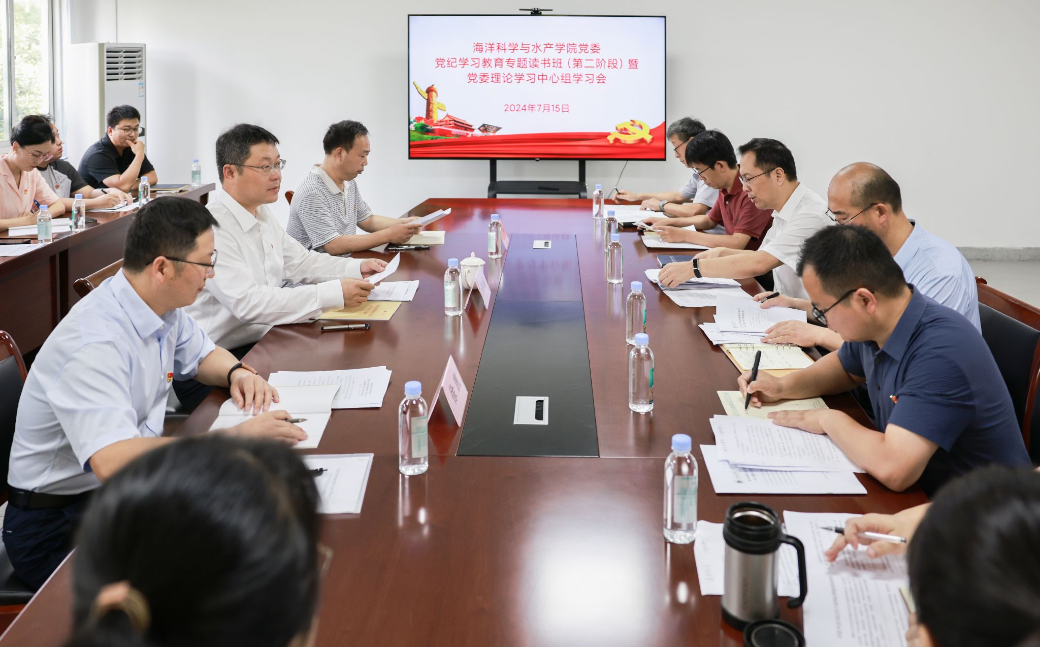 7月15日上午,海洋科学与水产学院党委理论学习中心组开展党纪学习教育暨党委理论学习中心组集中学习,校党委书记许峰到会指导并作现场点评,学院党委书记黄金虎主持会议。