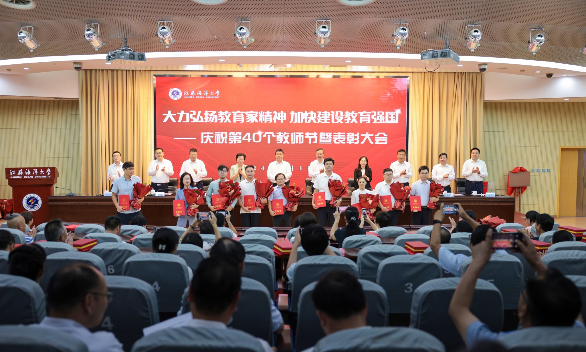 铸就国之栋梁,谱写强国华章。9月10日下午,我校举行庆祝第40个教师节暨表彰大会。校党委书记许峰,校长宁晓明,副校长金芙蓉、朱国军、郑利军、申欣、马廷淮、张元良、徐军田出席表彰大会。表彰大会由党委副书记李梅英主持。各单位(部门)主要负责人、受表彰人员、从教满30周年教师代表、新入职教师代表和学生代表参加大会。江海大师生欢聚一堂,共同分享节日的喜悦,感受身为教师的荣光。