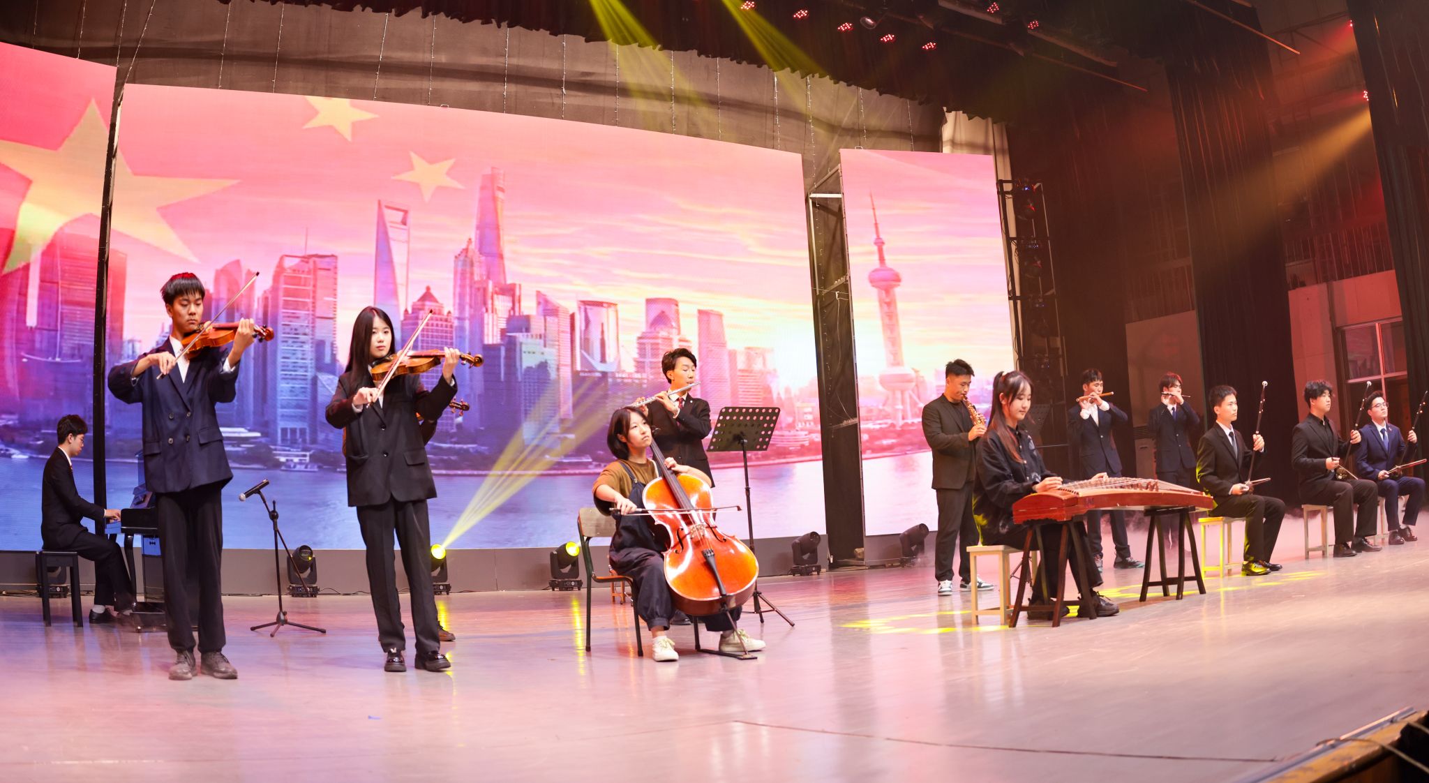 这堂大课共分为《坚守初心》《改革创新》《强国复兴》三个篇章,以3名青年教师思政主题宣讲开篇,将歌曲、舞蹈、朗诵、情景剧与党的创新理论宣讲相融合,激昂奋进的旋律、引人深思的歌词、感人至深的故事、铿锵有力的舞蹈,引领现场师生跨越历史岁月与信仰对话,在可听、可见、可感的“音乐思政课”中,感受时代脉搏,坚定理想信念,在阔步新征程上挺膺担当、至诚报国。
