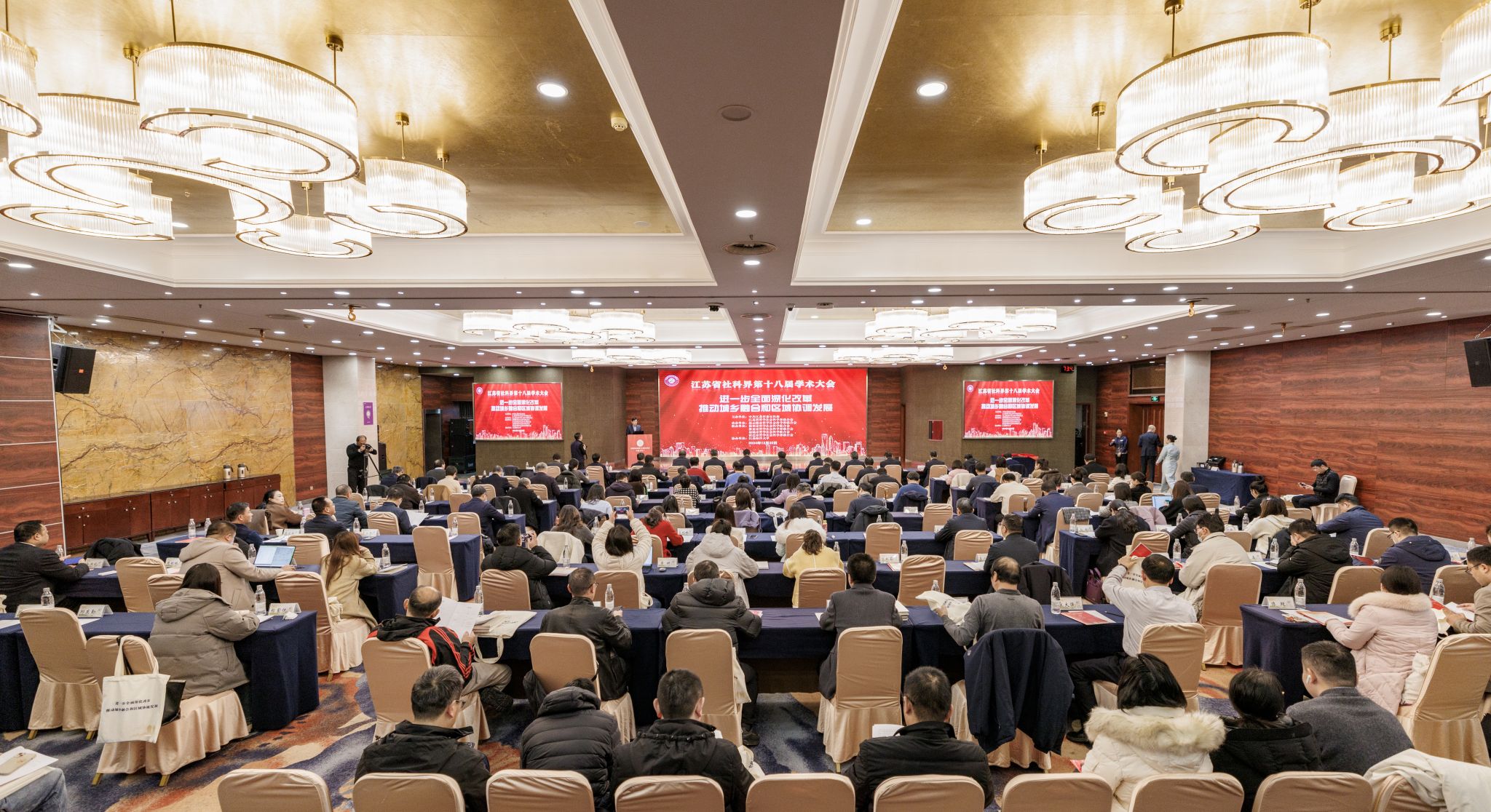 本次会议由连云港市社科联承办,江苏海洋大学协办,徐州、淮安、盐城、宿迁四市社科联联办。与会专家学者围绕“进一步全面深化改革,推动城乡融合和区域协调发展”这一主题,通过主旨报告、学术交流两个环节,聚焦学术前沿、理论热点,开展系列学术研讨活动,交流最新成果。