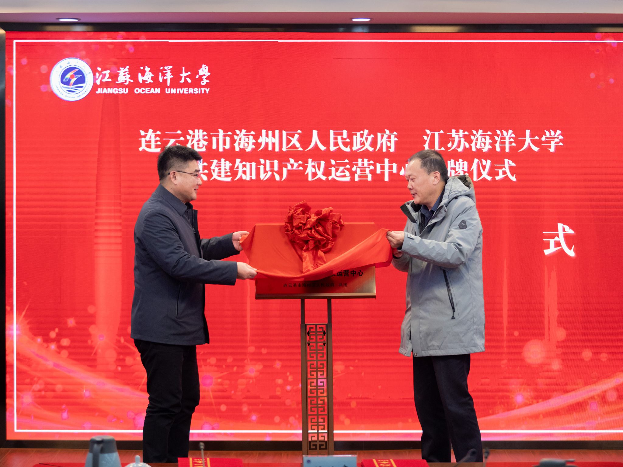 12月19日上午,我校与海州区人民政府共建的知识产权运营中心揭牌仪式在学术会议中心东海厅举行。校长汤建,江苏省知识产权局二级巡视员、局机关党委书记施蔚致辞。江苏省知识产权局服务处副处长朱煜,连云港市市场监督管理局党组书记、局长王波,海州区人民政府副区长万安然,连云港市知识产权局副局长马盈出席。我校科学技术处处长戴红伟主持仪式。