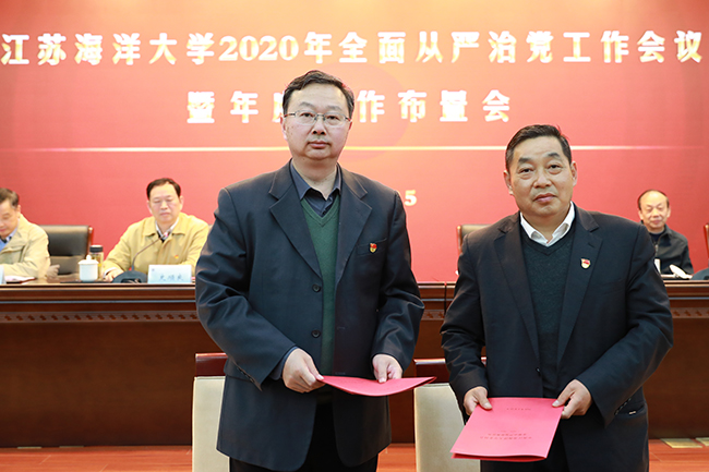 宁晓明就做好学校2020年度工作,提出四点要求。一要突出主要矛盾,着力聚焦年度重点工作。要把学校党委确定的八项重中之重工作,作为本单位、本部门的头等大事来抓好、抓实、抓到位。同时,当前要做好新冠肺炎疫情防控工作,精准掌握师生动态,切实维护校园秩序和做好应急预案。二要突出从严从实,着力提高党建工作水平。要认真贯彻新时代党的建设总要求,以落实全面从严治党责任清单为抓手,持续推进党的各方面建设,不断提升党建工作质量。三要突出内涵建设,着力提升学校发展质量。在人才培养方面,持续深化教育教学改革,制定江苏海洋大学本科教育发展“十四五”规划。在学科建设方面,加强优势学科和重点学科建设,对标学科评估指标,全力提升学科竞争力。在师资队伍方面,深入推进人事制度改革,构建符合各类人才特点的教师职业发展体系。在科学研究方面,完善科研论文奖励办法,积极培育高水平科研成果。四要突出问题导向,着力加强内部治理能力。要在全面回顾和系统总结“十三五”规划的基础上,谋划制定《江苏海洋大学“十四五”事业发展规划》。要完善综合考核办法,制定《江苏海洋大学综合考核实施办法》,推动精细化管理,提升支撑服务能力。