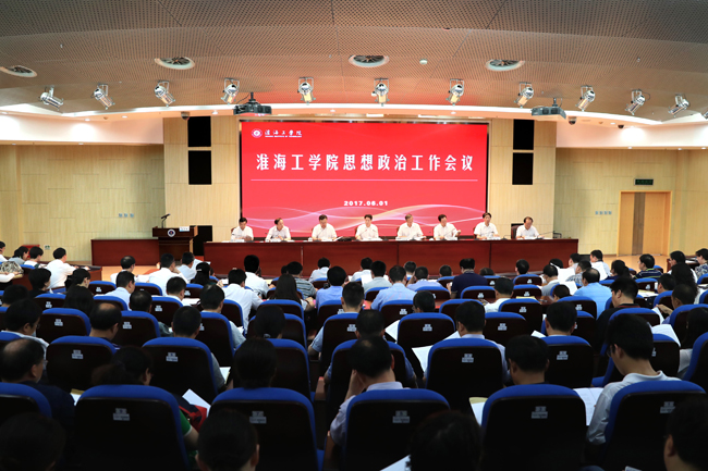 学校党委深入学习贯彻全国高校思想政治工作会议精神,制定了《淮海工学院关于加强和改进新形势下思想政治工作的实施办法》,提出了一系列具体举措。召开了全校思想政治工作会议,部署进一步加强和改进学校思想政治工作的主要任务。成立党委教师工作部,加强教职工思想政治工作和师德师风建设。成立社会科学处,增强哲学社会科学育人功能。召开第七次教学工作会议,进一步推进“课程思政”工作。