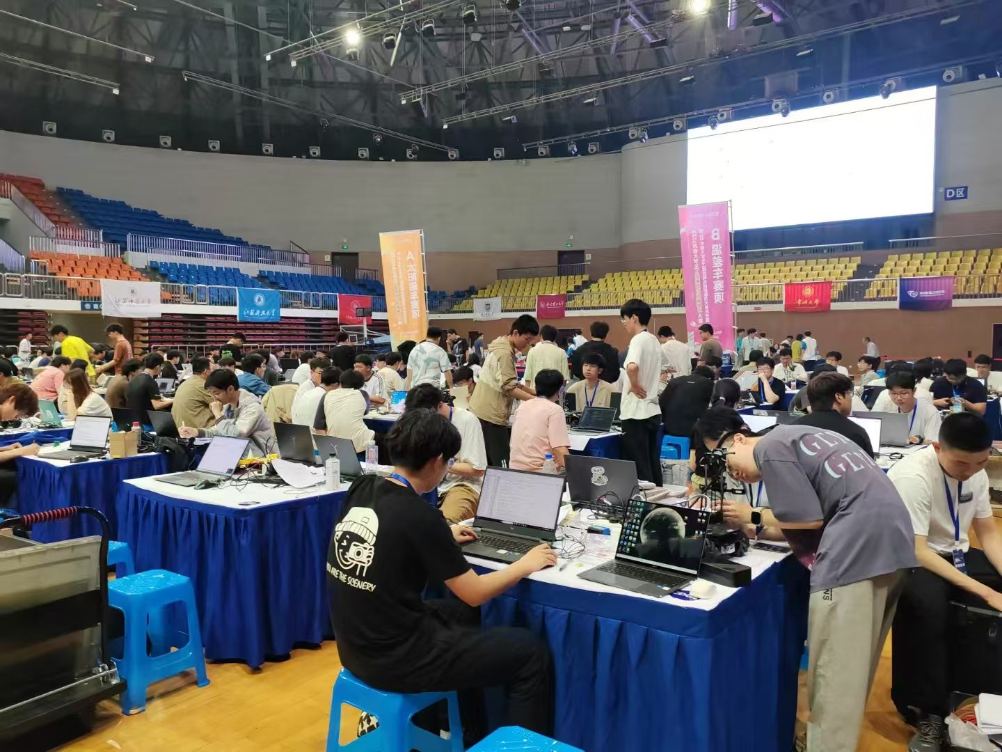 本次大赛以“交叉融合工程创新育新质,立德树人强国建设勇担当”为主题,由江苏省高校工程训练教学研究会、江苏省大学生工程实践与创新能力大赛组委会主办。大赛设置了“新能源车、智能+、虚拟仿真”三个赛道、七个赛项,吸引了全省42所高校共356支队伍,近1800名师生参加比赛,参赛队伍数量创历年新高。