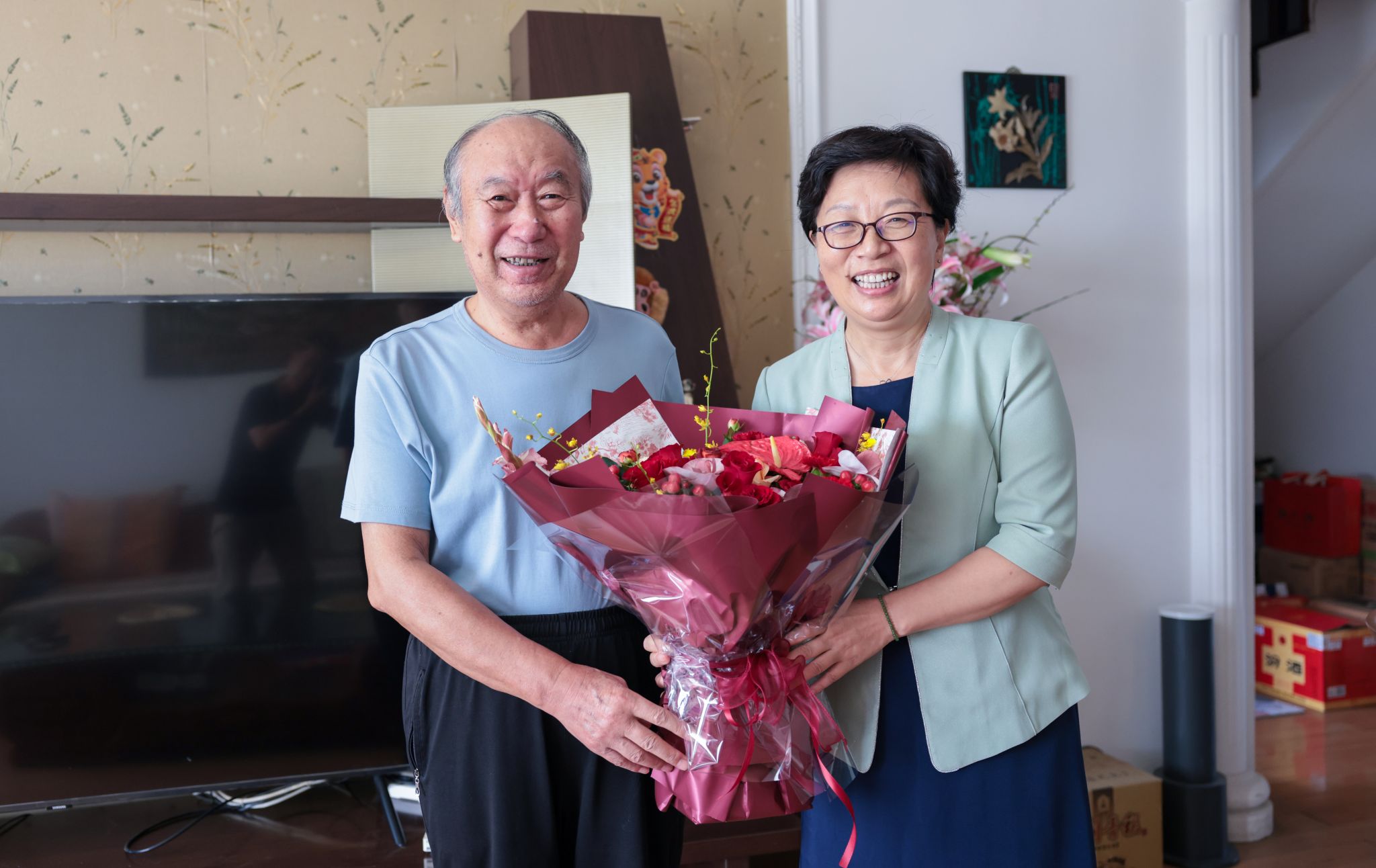 校长办公室、党委宣传部、工会、离退休工作处及相关院系负责人参加慰问。