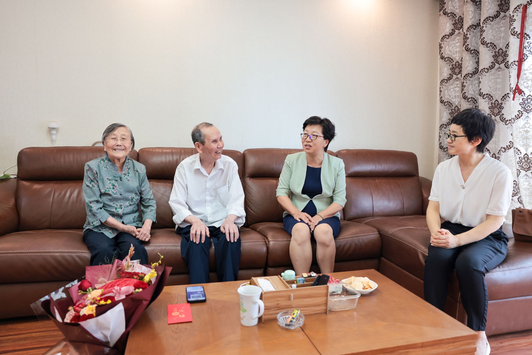 李梅英先后来到陈寰、冯景华两位退休教师家中看望慰问,祝愿老同志们身体健康、阖家欢乐。大家围坐在一起,分享了生活趣事,畅谈了教育生涯的经历和体会,以及对学校发展的美好期待。“学校的发展离不开老教师们的无私奉献和薪火相传。”李梅英对退休教师们作出的贡献表示衷心感谢,希望他们继续关注学校发展,为学校提出更多宝贵意见。