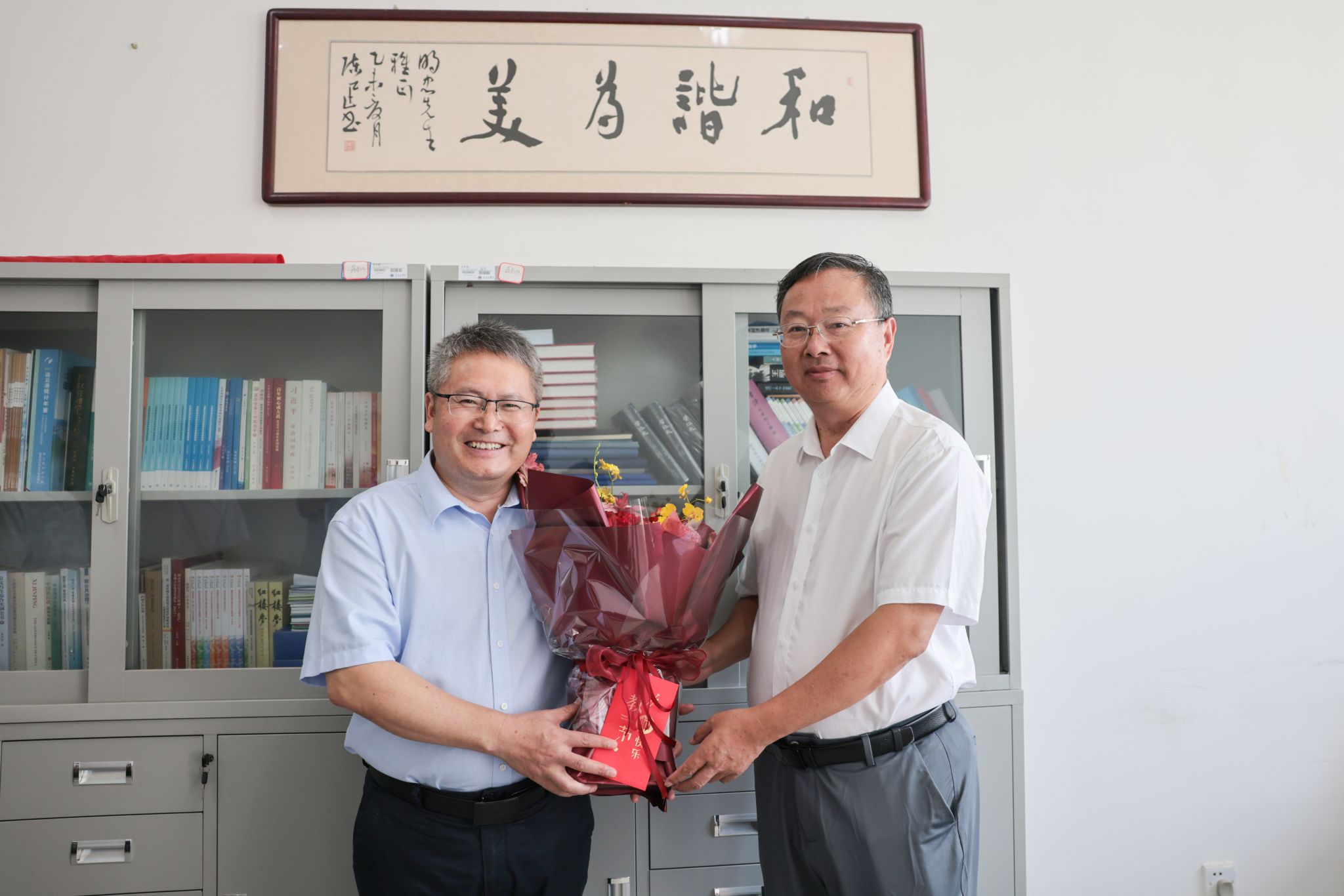 在文法学院和商学院,宁晓明看望慰问了吴明忠院长和谭鑫老师,并与他们详细交流了工作进展和成果。他表示,学校正在高水平应用研究型海洋大学建设的新征程上砥砺前行,各领域工作也取得了新进展、新成效,这一切都离不开全校教师的长期贡献。他希望全体教职工,扛起新时代教育工作者“传道、授业、解惑”的责任担当,不断提高自身业务能力和素质,凝心聚力,接续奋斗,为加快教育现代化、建设教育强国作出更大贡献。