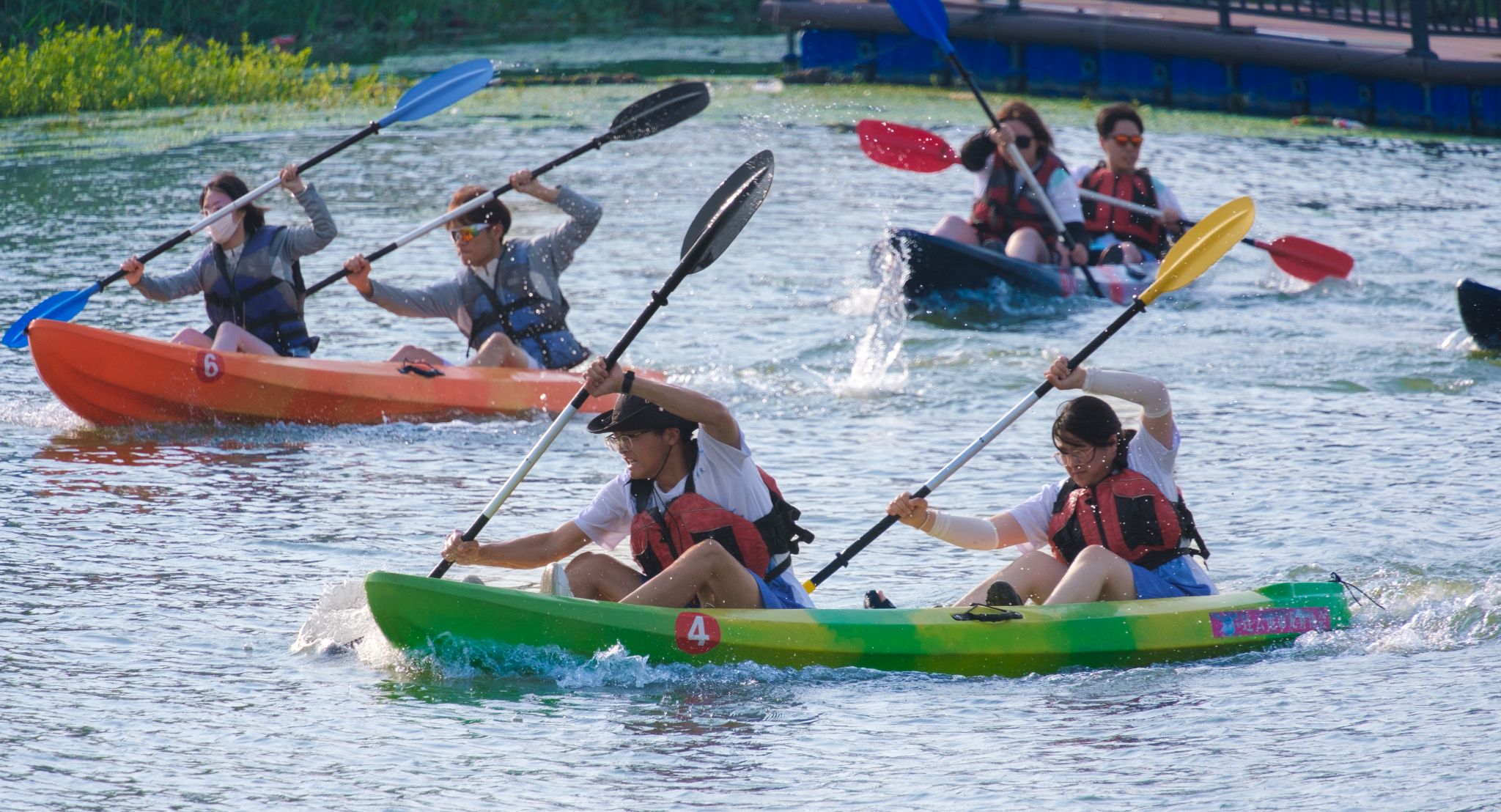 本届水上运动会分学生组和教工组,共计19支参赛队伍,386名运动员参加比赛。其中,学生组有龙舟、单人艇、双人艇三个项目,教工组参加双人艇项目。