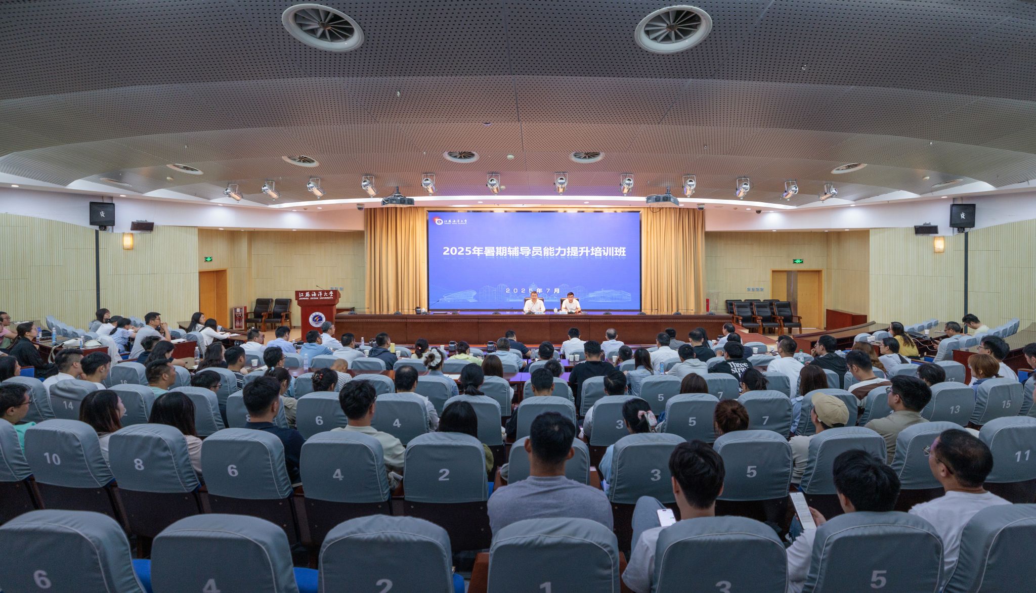 为不断提升我校辅导员的理论素养和职业能力,切实加强高质量辅导员队伍建设,7月4日至7月5日,我校举办2025年暑期辅导员能力提升培训班。开班仪式在会议中心黄海厅举行,校党委书记许峰出席并讲话,党委常委、副校长郑利军出席开班仪式。