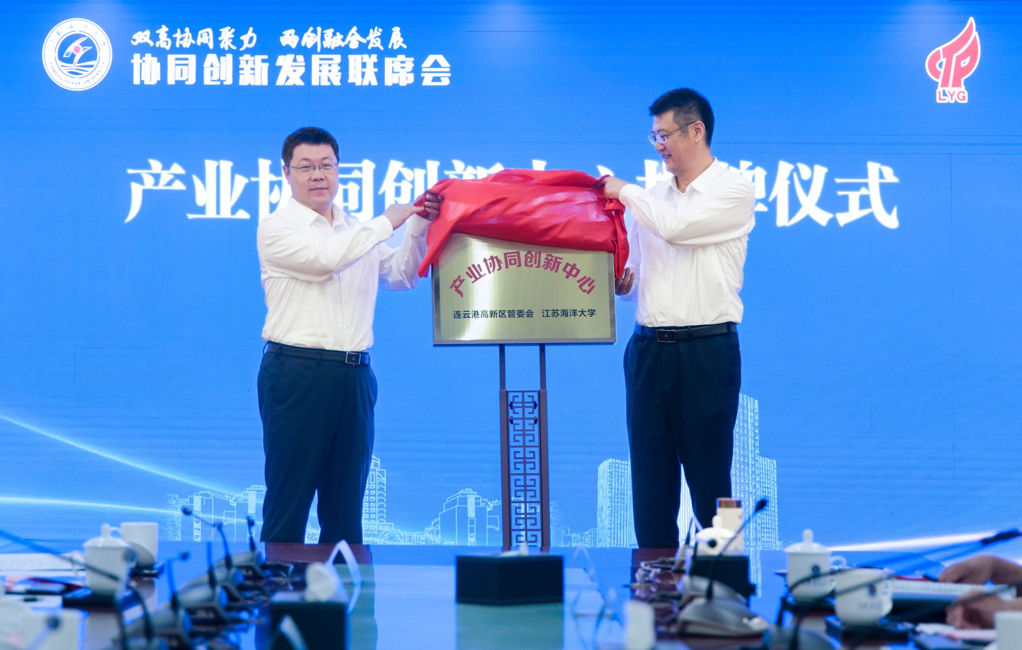 双高协同聚力,两创融合发展。7月4日,江苏海洋大学—连云港高新区协同创新发展联席会在会议中心东海厅举行。双方就共建产业协同发展中心,推动双高协同融合发展签署一揽子合作协议。校党委书记许峰,校长汤建,海州区委书记、高新区党工委书记李锋,校党委常委、副校长申欣出席会议。会议由汤建主持。