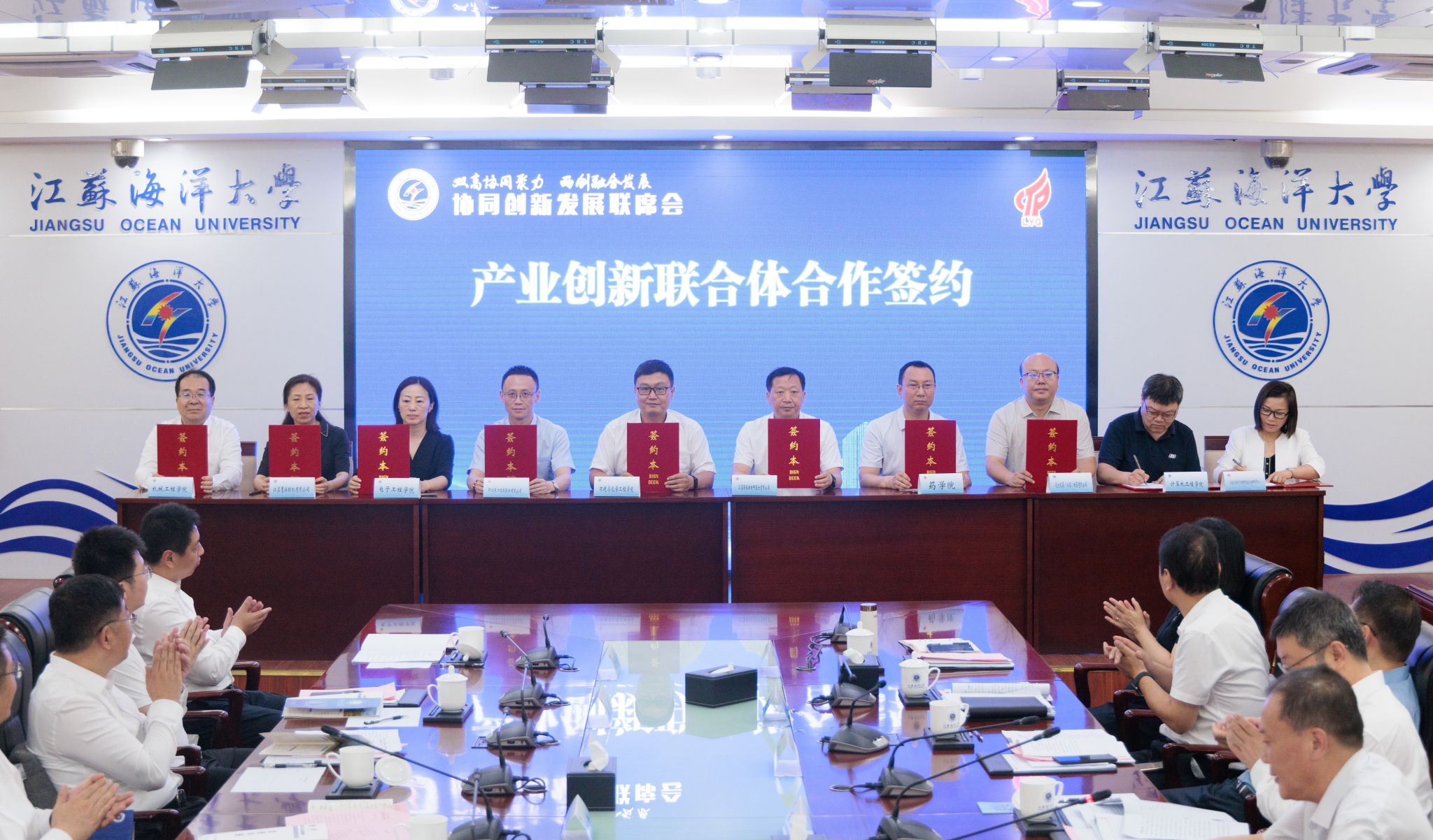 第二轮进行产业创新联合体合作签约。我校5名科研团队负责人分别与5家重点企业代表签订产业创新联合体协议,合作涵盖了生物医药、工程装备、先进材料、海洋经济、计算机等领域。