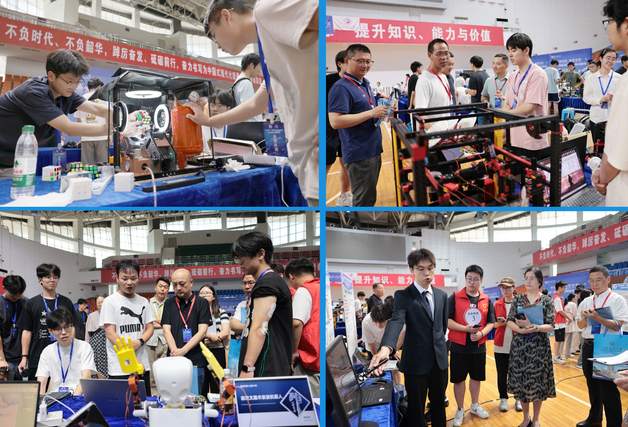 江苏省高校智能机器人创意大赛是我省高校机器人技术领域的一项重要赛事,涵盖工业机器人系统集成、服务机器人创新应用等六大方向,自2022年举办首届赛事以来,吸引了众多高校的积极参与和广泛关注,涌现出智能分拣机器人、脑控外骨骼等优秀作品,为产业输送了大量创新人才。本次比赛共有53所高校、1021支队伍、4114人次师生报名,参赛高校、队伍和参赛选手数量再创新高。大赛共设3个主题、七个赛项。此外,本届大赛设立了“大模型技术应用创新赛”和“机器人快速制造赛”两项产教融合特色赛,推进产、学、研、创深度融合,形成人才培养合力,激发创新创业活力。
