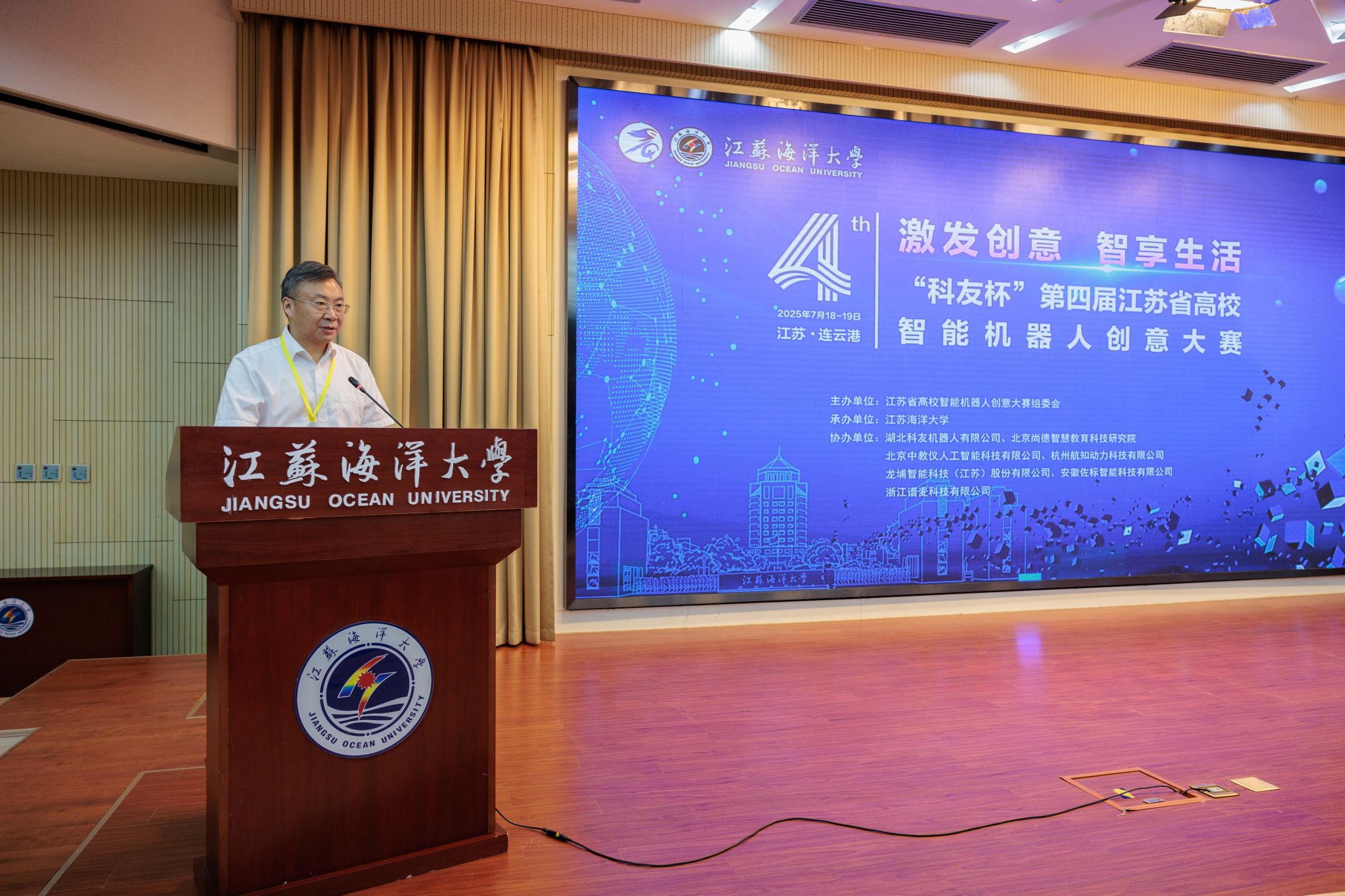 7月19日上午,“科友杯”第四届江苏省高校智能机器人创意大赛暨第八届中国高校智能机器人创意大赛江苏区域赛决赛在我校举办。开幕式在会议中心黄海厅召开。校党委书记许峰、江苏省高校智能机器人创意大赛组委会秘书长龚俊杰出席并致辞。