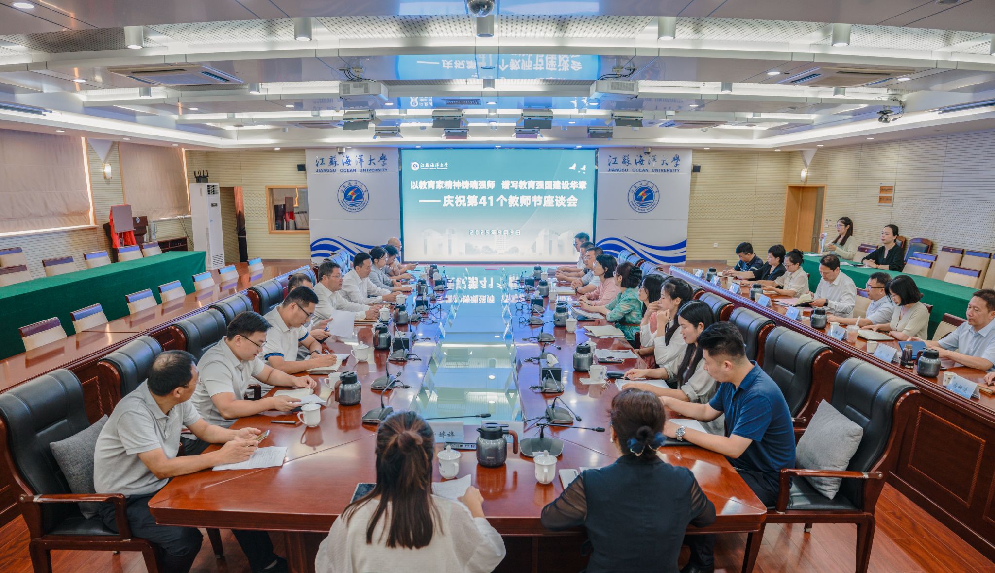 为庆祝我国第41个教师节,9月9日,学校围绕“以教育家精神铸魂强师,谱写教育强国建设华章”主题,在会议中心东海厅召开教师代表座谈会。校党委书记许峰出席会议。副校长徐军田主持座谈。