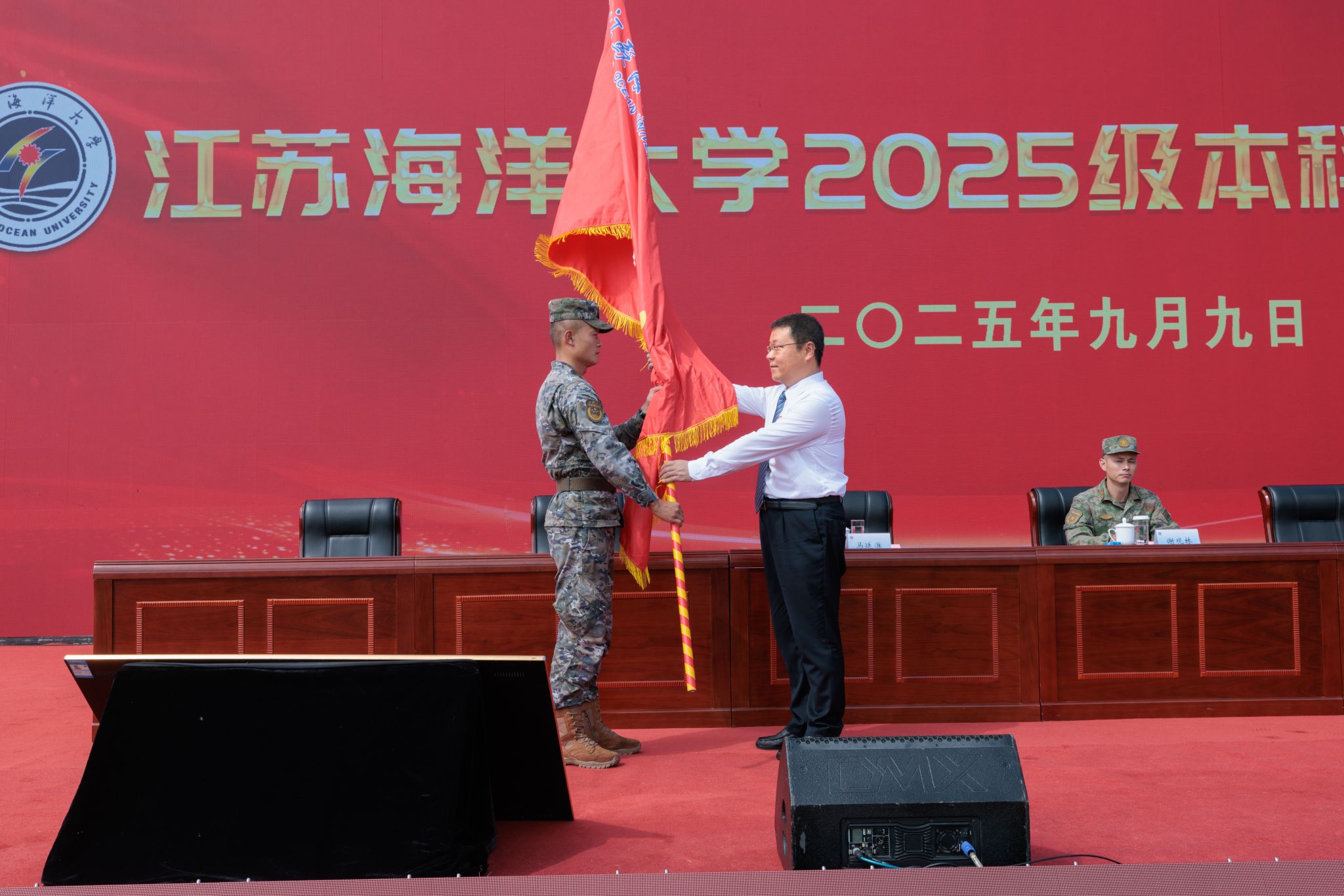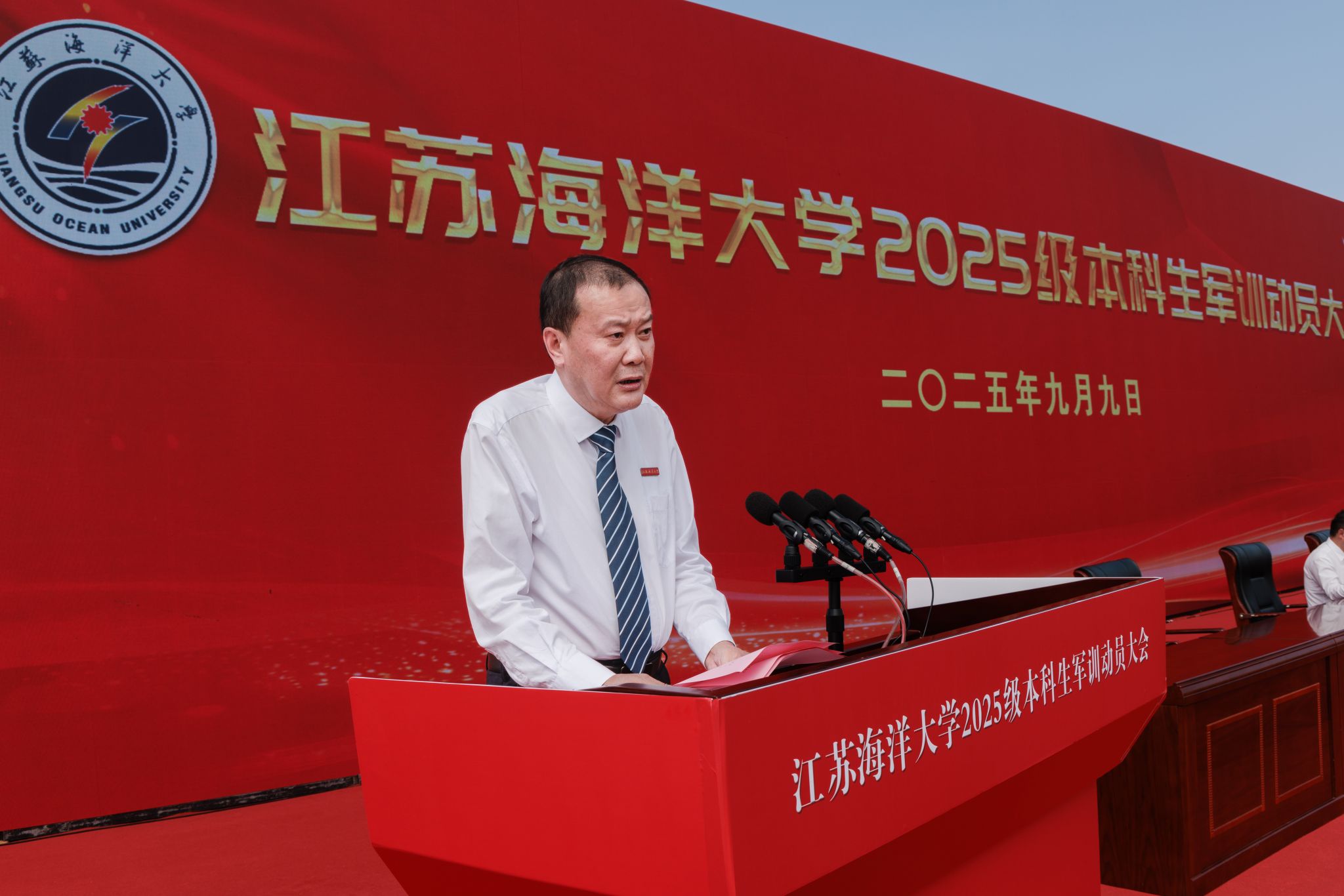 马廷淮宣读了江苏海洋大学2025级本科生军训旅组成人员名单。