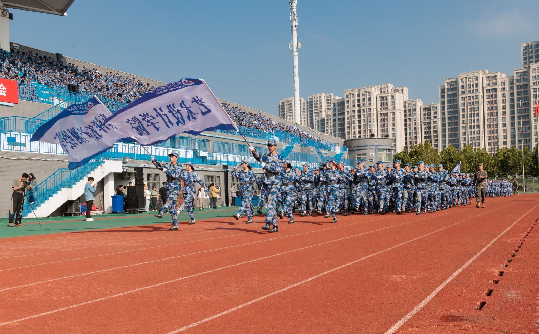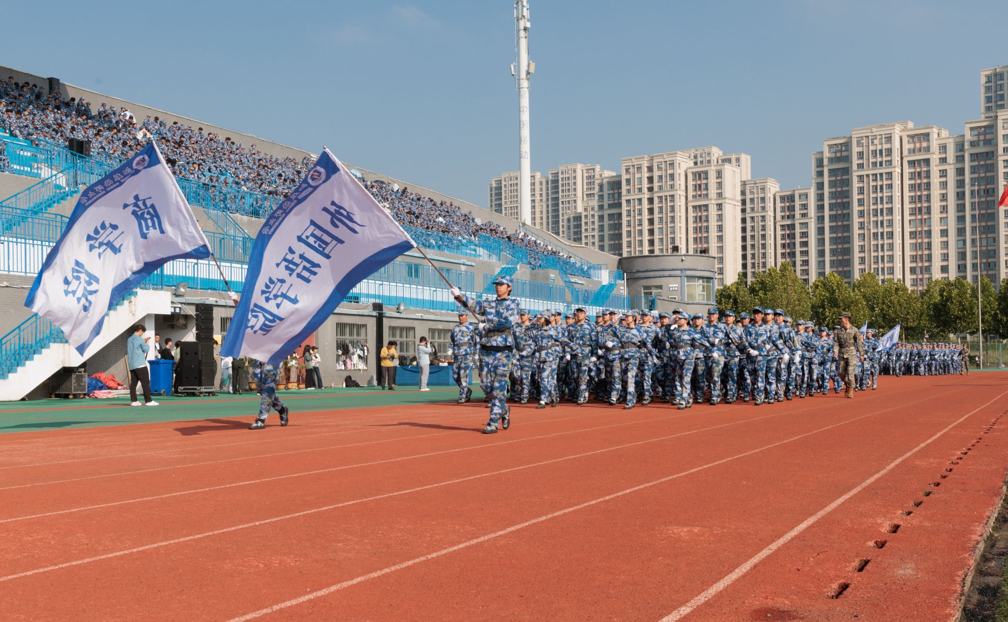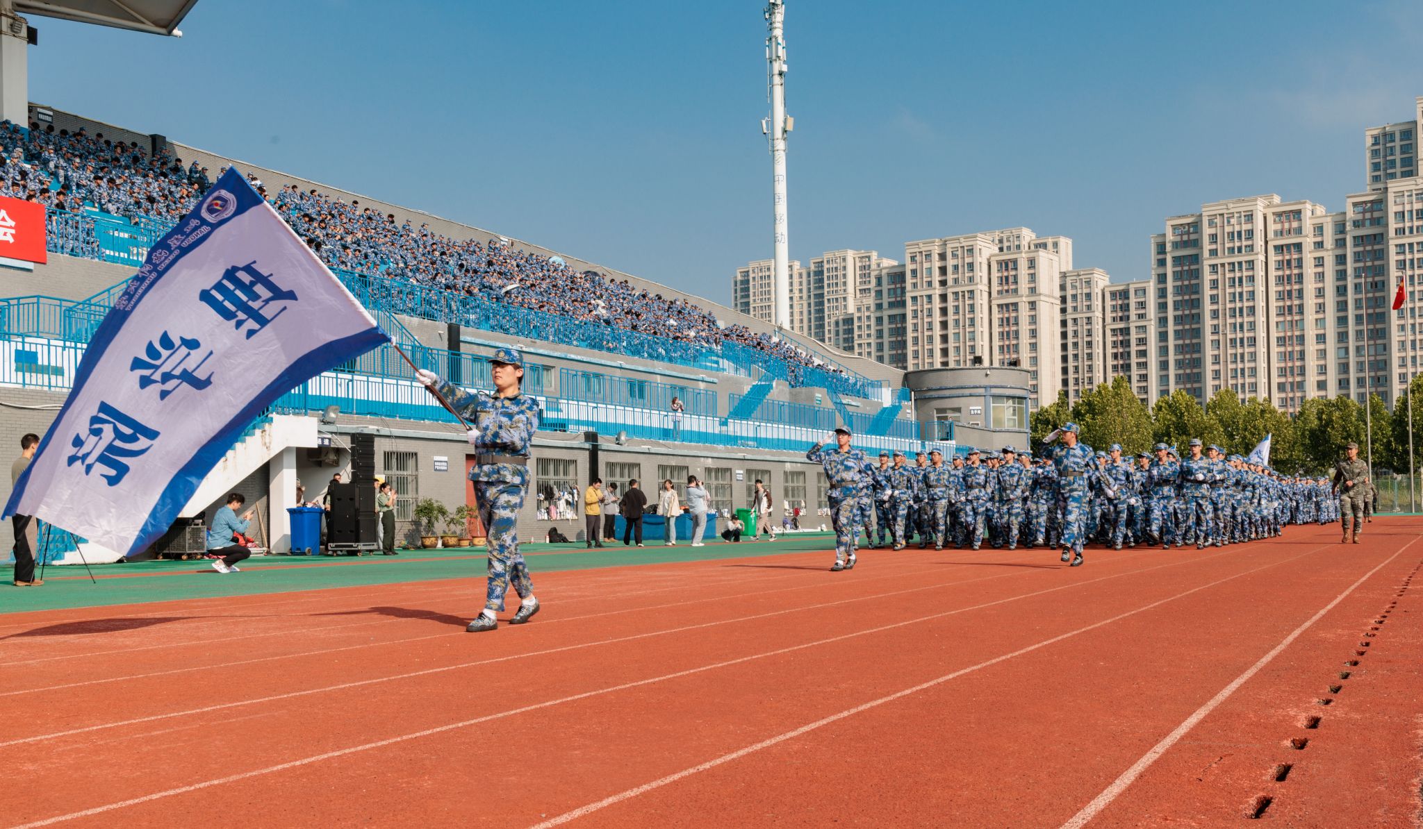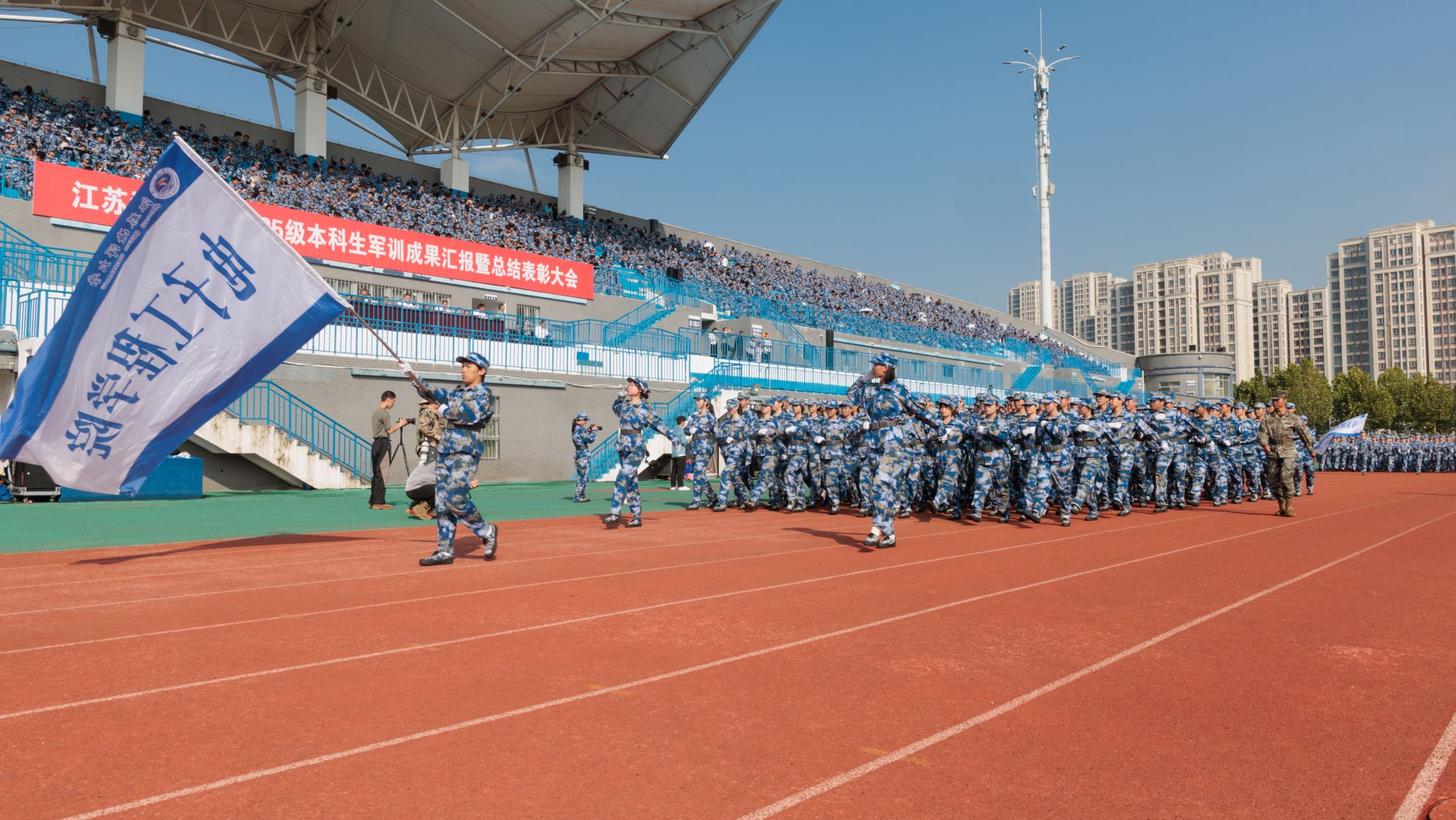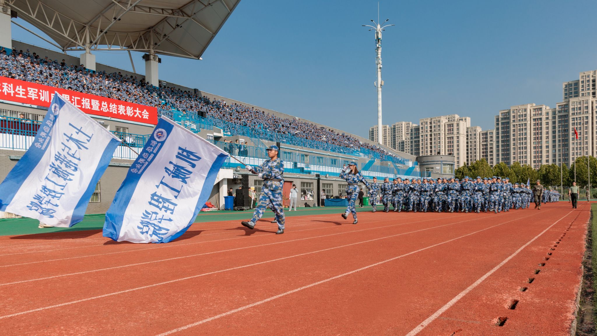 9月20日上午,时值第25个全民国防教育日,我校2025级本科生军训成果汇报暨总结表彰大会在苍梧校区东运动场举行。校党委书记许峰,校长汤建,副校长、2025级本科生军训旅旅长郑利军,副校长、2025级本科生军训旅政委马廷淮出席大会。承训部队武警连云港支队副参谋长张鹏及全体教官,校军训工作领导小组成员,军训指导员和2025级军训学员共同参会。郑利军主持大会。