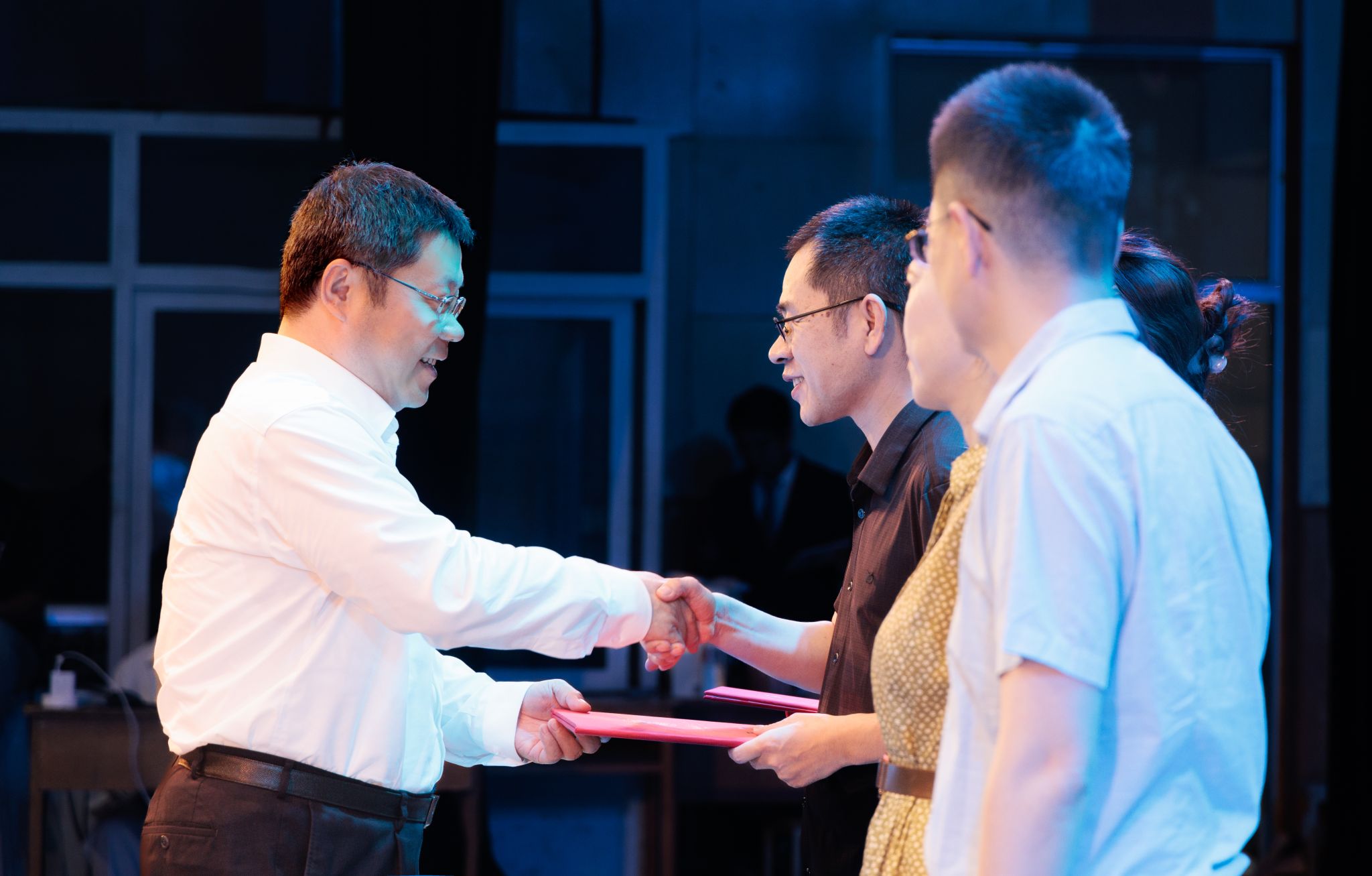 许峰为国家海洋博物馆科普中心副主任朱辞、中海油研究总院海管结构首席工程师侯静、《中国自然资源报》首席记者赵建东颁发校外思政课教师聘书。