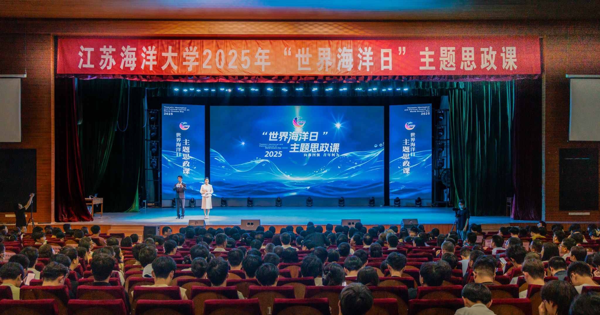在第十七个“世界海洋日”暨第十八个“全国海洋宣传日”即将到来之际,为切实提升师生海洋意识与素养,激励广大师生积极投身于国家海洋事业发展,6月6日,江苏海洋大学2025“世界海洋日”主题思政课于学校大礼堂开讲。校党委书记许峰、校长汤建、校党委副书记李梅英、副校长金芙蓉、郑利军、申欣出席活动。