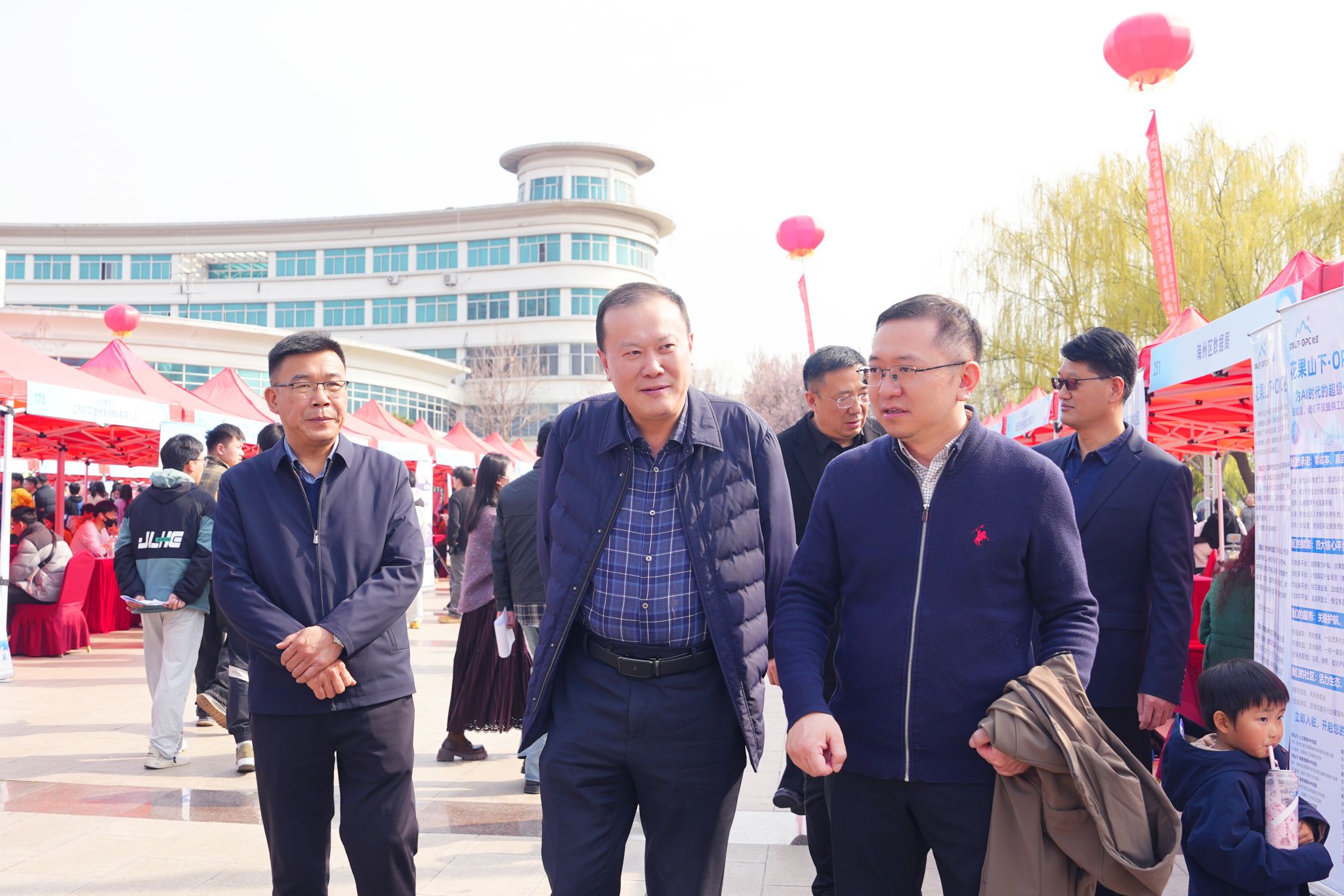 校长汤建、副校长郑利军、江苏省高校招生就业指导服务中心副主任蔡亮到现场,与用人单位和毕业生深入交流,了解企业人才需求和学生求职情况。