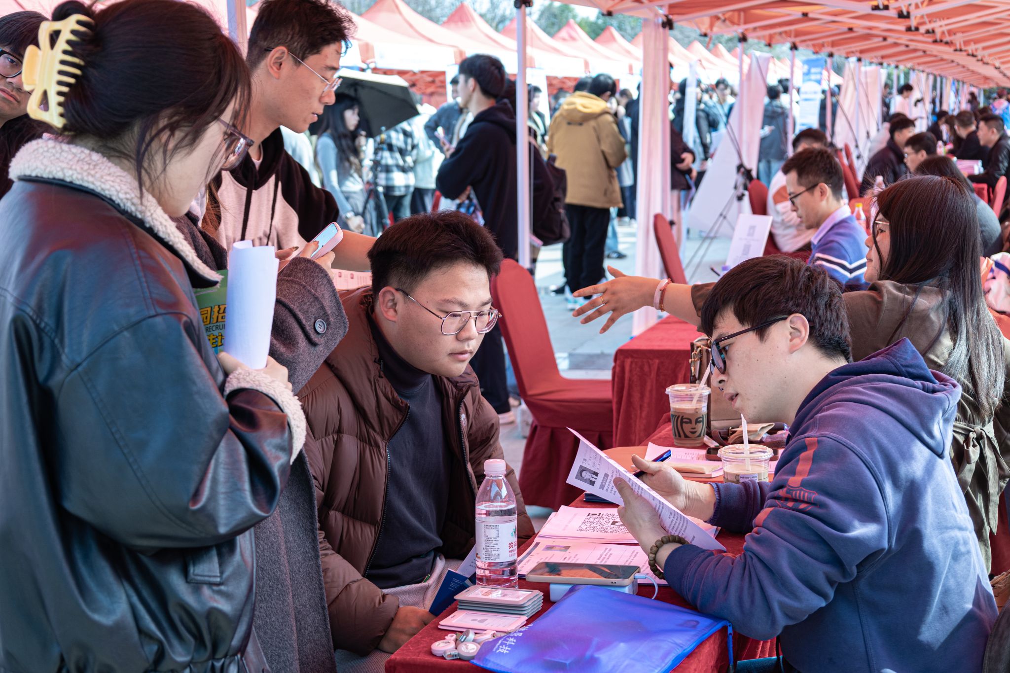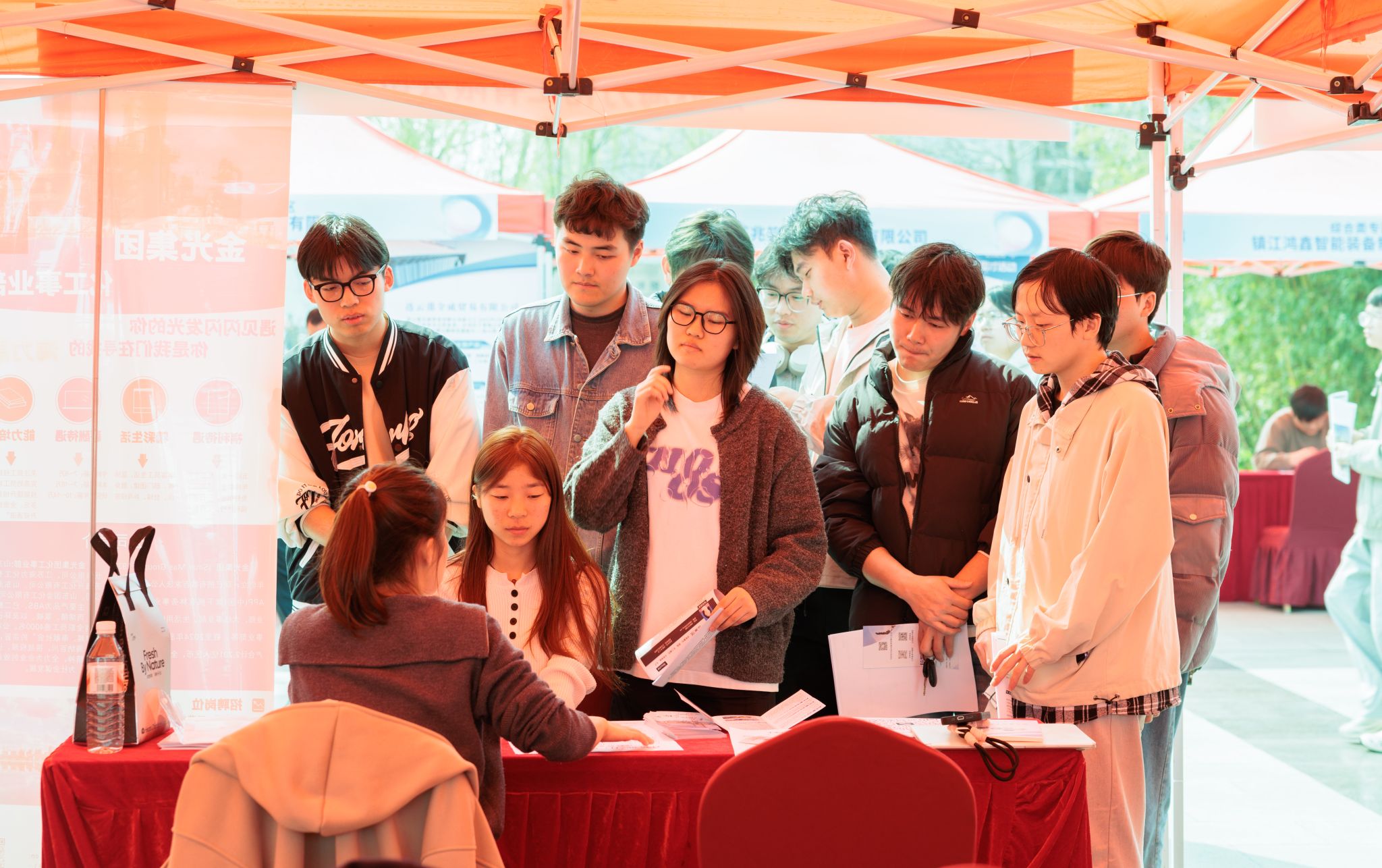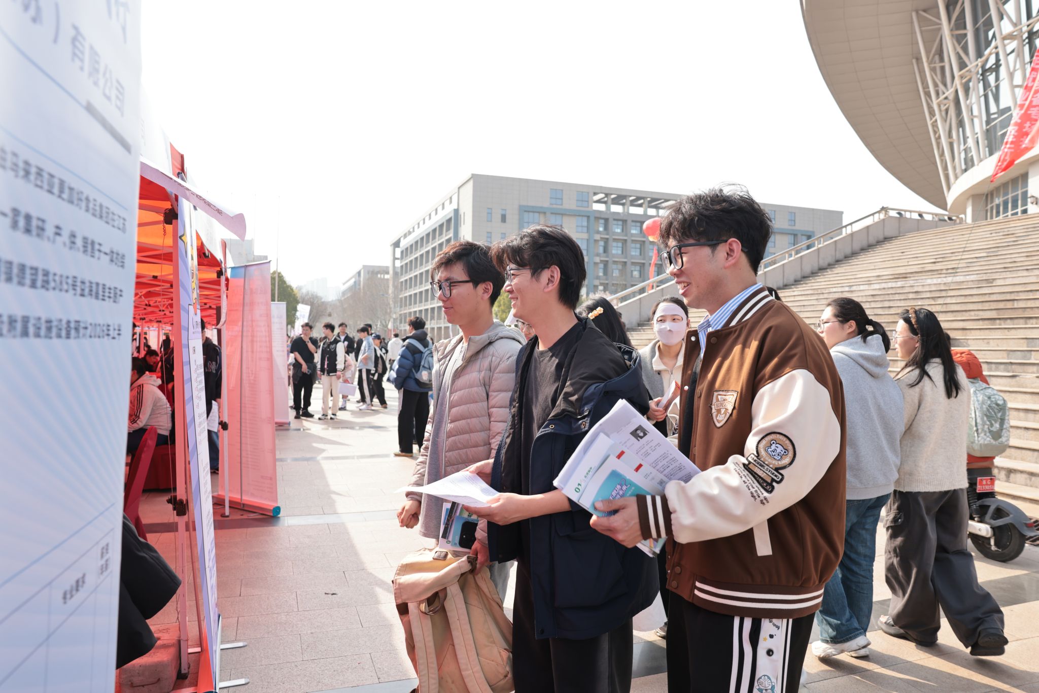 现场设置了南通、无锡、镇江、昆山、徐州、常熟等地方专区,以及海洋装备、智能装备、生物医药、化工材料、金融服务、信息技术等十余个行业专区,实现专业与岗位的精准匹配,方便学生高效对接心仪企业。招聘会吸引了大量2026届毕业生踊跃参与,不少低年级学生也前来观摩学习,提前了解就业市场。