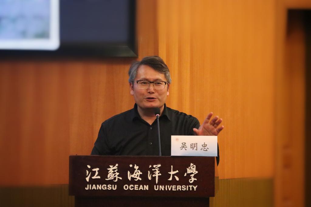 吴明忠以《从这里走向深蓝——和研究生朋友讲校史》为题,从学校所在的空间方位讲起,通过一张张精美照片和一份份真实档案,带领同学们穿越历史时空,回望连云港从孔夫子到孙中山数千年的人文故事,重温学校从淮海大学(筹)到更名江苏海洋大学极不平凡的办学经历,推介了数十年来广大校友中涌现的杰出代表。