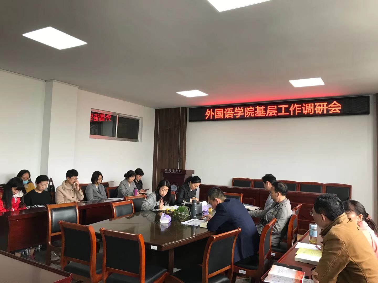 3月17日至4月21日,外国语学院领导班子集体先后到大学英语第一教研室、大学英语第二教研室、朝鲜语系、俄语系、日语系、英语系开展“学党史、办实事、谋新局”调研活动,深入了解各系(室)工作状态和发展态势,进一步统一思想,谋求发展。