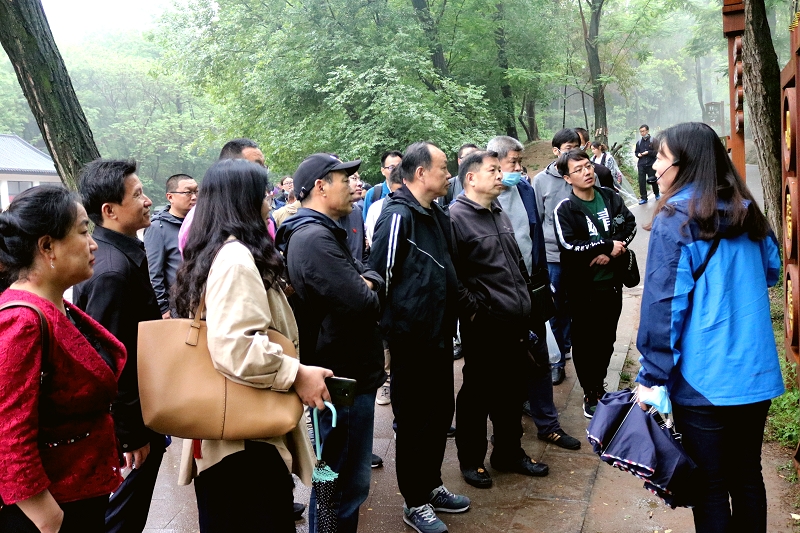绿水青山就是金山银山。如今的马陵山,生态环境明显改善,到处郁郁葱葱,鸟语花香,一派旖旎的自然风光。虽然天公不作美,大家依然冒雨前行,拾阶而上,讲解员一路随行,仔细介绍解放战争时期马陵山上发生的那场惊心动魄的战役。1946年冬,陈毅司令员和粟裕副司令员在这里指挥了堪称人民解放战争第一役的“宿北大战”,经过七天七夜的浴血奋战,华东野战军全歼国民党69师2万余人,敌中将师长戴之奇最后因走投无路自杀。