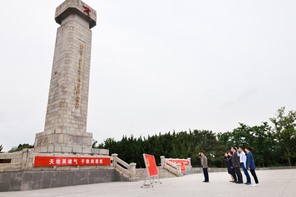 在烈士纪念塔前,支部全体党员进行了现场沉浸式学习。党支部书记张兵结合党日活动主题,领学了习近平总书记的重要文章《用好红色资源,传承好红色基因,把红色江山世世代代传下去》,为支部党员上了一堂现场党课。随后,支部全体党员面向党旗,高举右拳,重温了入党誓词。